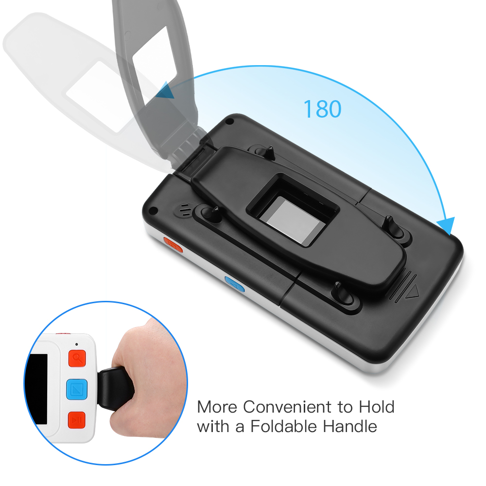 Comfortable Handle - the foldable handle of this video magnifier is ergonomically designed to grip/hold comfortable for most hands, making it more stable and easier for reading on computer or box.