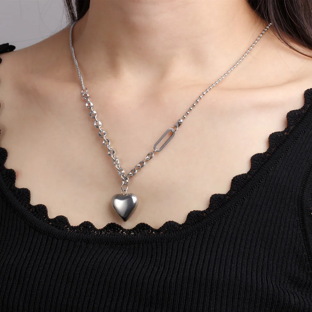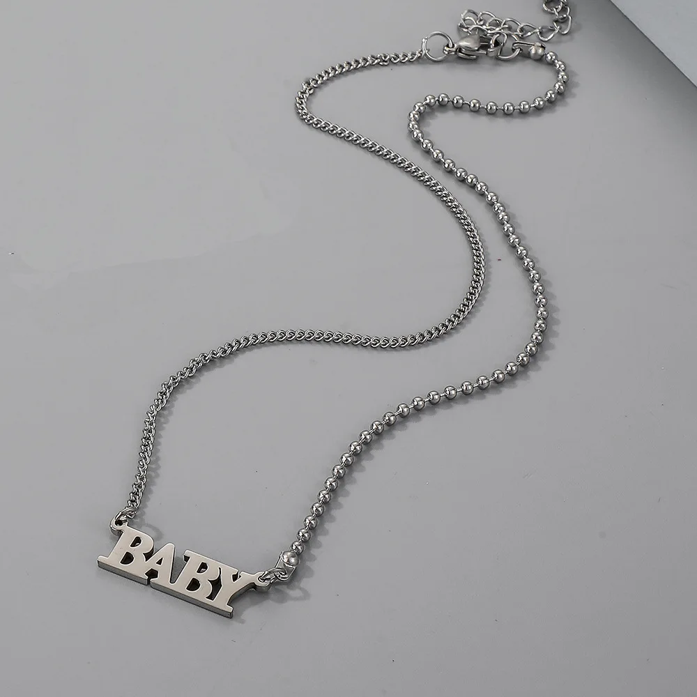 Подвеска из нержавеющей стали с буквенным принтом для женщин, Серебряное маленькое ожерелье, кулон с сердечком, ювелирные изделия