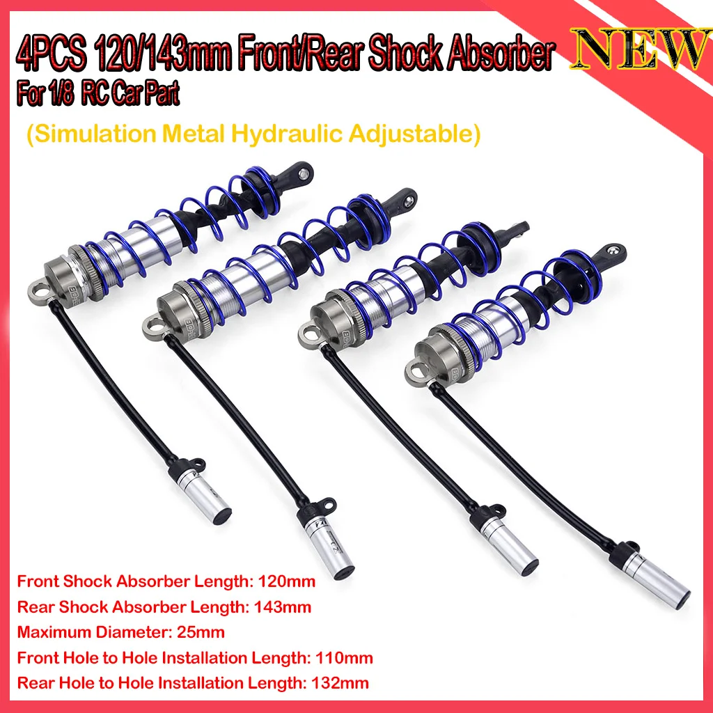 4PCS ZD Racing 120/143mm Front/Rear Shock Absorber Damper Suspension Parts for 1/8 JLB HSP HPI Redcat Hobao RC Car Truck Buggy Truggy