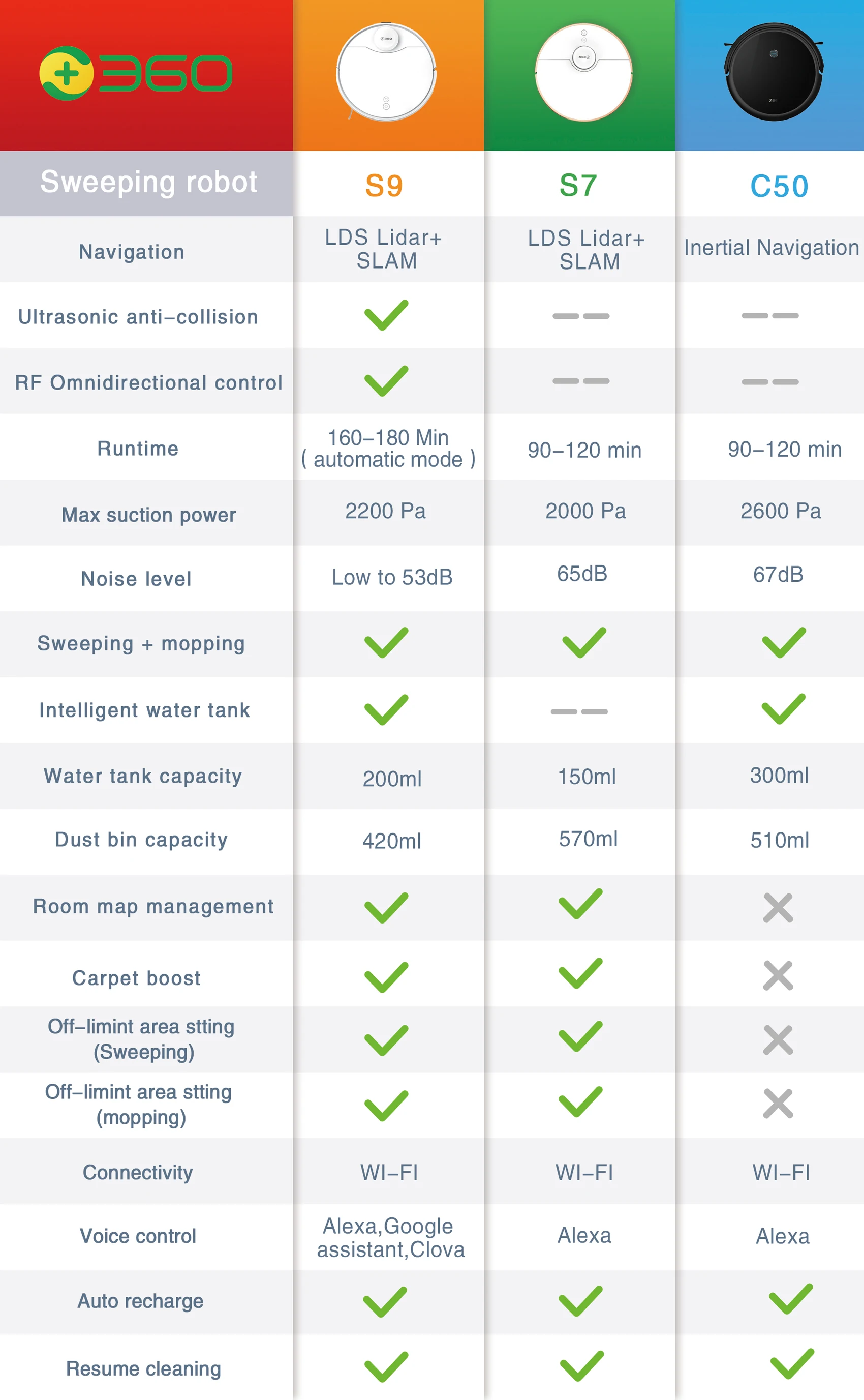 ● Гарантированная технология 360 технология подметания машины является зрелым, и более десяти серий lidar подметальных машин на рынке. C50-это 360 низкоклассный инерционный подметальный продукт, разработанный 360, который больше подходит для низкоклассных групп потребителей. ● Интеллектуальное управление с помощью приложения инерционной навигации Управление ладонью 360App, управление одной кнопкой, физический многофункциональный пульт дистанционного управления, инерционная навигация высокой конфигурации. ● Изысканный и компактный Изысканный и шикарный, умный и гибкий, объем уменьшается на 20%, проходной увеличивается на 30%, стройного тела 7,9 см, бесплатно, чтобы проникнуть в нижней части кровати, дно дивана и шкафа для очистки пыли. ● Супер срок службы батареи Аккумулятор 2600 мАч, срок службы батареи 120 мин, может очистить 150 ㎡ за раз. ● Большое всасывание 360 C50 имеет большую мощность всасывания, которая отражается в супер мощности всасывания 2600pa. Бесщеточный вентилятор Nidec имеет длительный срок службы. 4-я сила ветра может быть скорректирована по желанию, и эффективность очистки пыли и волос, Ковров, полов и напольной плитки может быть легко увеличена. ● Интеллектуальное управление резервуаром для воды Интеллектуальный Электрический резервуар для воды (300 мл), три уровня регулировки объема воды, действительно влажный буксир без вспенивания пола, избавьтесь от оригинальной концепции физического проникновения, электронный контроль более умный и внимательный. ● Большое мусорное ведро 510 мл Большое мусорное ведро, легко моется, Разборка и сборка ящика, легко брать и беспокоиться; Убирать один раз в 1-2 недели; Моющаяся Пыленепроницаемая марля и фильтр, двойной фильтр дольше. ● Двойное интеллектуальное управление В дополнение к пульту дистанционного управления синхронизацией приложений в любое время, он также обновлен до двойного дистанционного управления, и добавлен инфракрасный пульт дистанционного управления, который может быть легко использован всей семьей и улучшить опыт. ● Классическая конфигурация Классический круглый чисто белый дизайн, простая атмосфера, подходит для домашнего эстетического дизайна и сочетается с мебелью. ● Голосовая Подсказка в четырех странах Голосовые подсказки четырех стран: английский, японский, русский, немецкий Примечание: ● Карта в приложении предназначена только для отображения анимации, а не для недвижимости ● Этот робот-пылесос Поддерживает голосовую трансляцию на английском, японском, русском, немецком языках ● Alexa в настоящее время поддерживает английский, японский, русский, немецкий Типы аксессуаров: Мусорное ведро, HEPA, коврик для уборки, пульт дистанционного управления, щетка для прокатки, боковая щетка, уборочная машина, резервуар для воды Размеры и вес ● Вес продукта: 2,1700 кг ● Вес упаковки: 6,5000 кг ●Product размеры размер упаковки (Д x Ш x В): 31,50x31,50x7,90 см/12,4x12,4x3,11 дюйм (ов) ● Размер упаковки (Д x Ш x В): 58,20x40,00x14,00 см/22,91x15,75x5,51 дюймов Содержимое посылка Посылка: 1 Вакуумный робот, 2 боковые щетки, 1 адаптер питания, 1 зарядная док-станция, 1 пульт дистанционного управления, 2 батарейки дистанционного управления AAA, 1 x высокоэффективный фильтр HEPA, 1 x чистящий инструмент, 1 x мусорное ведро, 1 x резервуар для воды, 1 х тряпка для швабры, 1 х Многоязычная инструкция пользователя
