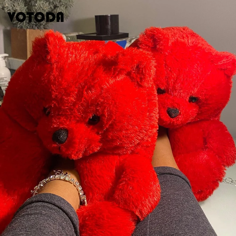 Женские домашние тапочки с плюшевым мишкой; Зимние плюшевые домашние тапочки с героями мультфильмов; Теплая забавная домашняя обувь; Женские меховые шлепанцы с искусственным мехом