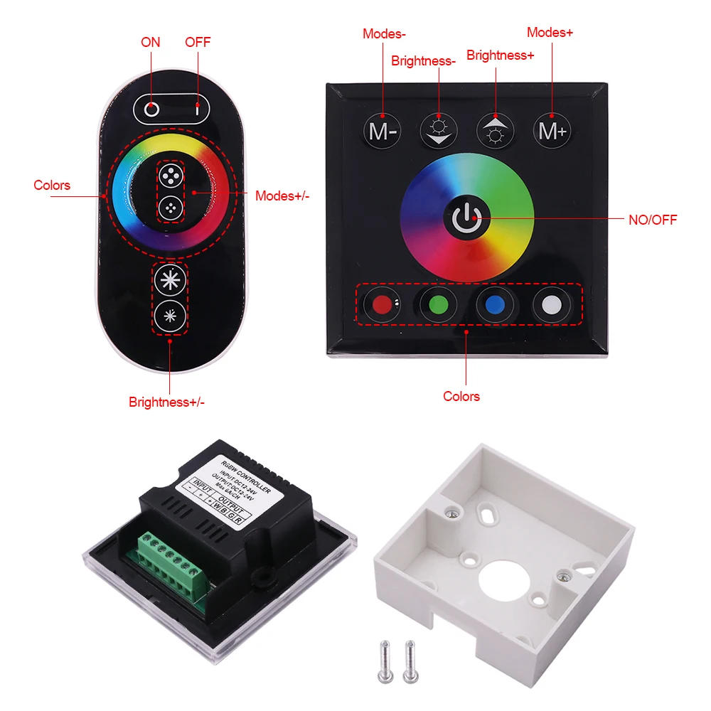 Двойной метод управления: Сенсорная панель или сенсорный пульт дистанционного управленияМатериал: стеклянная панель + АБС-пластикВходное напряжение: DC12-24VВыходное напряжение: DC12-24VВыходная мощность: Макс. 288 Вт (DC12V) / 576 Вт (DC24V), 6Ax4 каналыЦвет: черныйРасстояние дистанционного управления: 15-20 метровРабочая температура: - 20-60 ℃Класс водонепроницаемости: IP65Размер пульта дистанционного управления: 86*86*32 ммРучной сенсорный пульт дистанционного управления Размер: 113*55*20 ммПодходит для: RGB/RGBW Светодиодная лента Ручной сенсорный пульт дистанционного управленияОсобенности:RF беспроводное сенсорное управление RGB контроллер принимает передовые емкостные сенсорные технологии, используется для управления светодиодом в качестве источника света, через резистивные тока лампы и фонари, такие как: RGB лампа и т. Д.RF беспроводной сенсорный контроллер RGB использует Усовершенствованный беспроводной сенсорный пульт дистанционного управления, с выбором различных режимов регулировки изменения скорости, таких как регулировка яркости статического цветового переключателя.RF беспроводной сенсорный контроллер RGB также имеет возможности хранения питания, каждый раз на электрической мощности, когда в последний раз режим пользователь может в соответствии с их потребностями, выберите с помощью сенсорного режима дистанционного управления, его встроенный семь видов статического цвета, прыжок для изменения, постепенное изменение, мигающий, Автоматический цикл, такой как эффект преобразования освещения. Сенсорная панельОсобенности:Новый и высококачественный пульт дистанционного управления с сенсорной панелью разработан со стеклянной панелью, и внешний вид красивый и модный. Высокоточный емкостный сенсорный чип управления используется для увеличения чувствительности касания и уменьшения ложного триггера для управления различными светодиодными лампами и фонариками, такими как: точечный источник света, мягкая световая полоса, настенный светильник, панельная лампа и т. Д. Имеет преимущества удобного подключения и простого использования. В соответствии с фактическими потребностями клиентов может достичь эффекта изменения освещения, таких как мерцание, градиент и т. д., с 7 видами статических цветовых эффектов освещения. Применение:Этот тип RF full touch контроллер может быть подключен ко всем светодиодным лампам в DC12-24V. Например: светодиодный модуль, точечный макстрический свет, гибкая лента, панельные светильники, настенная шайба и т. Д. Удобно установить и легко работать. Он может быть доставлен в гостиничное украшение, украшение дома, коммерческое освещение и место отдыха и т. Д. Пакет включает в себя:1 х сенсорный пульт дистанционного управления (3 * AAA батареи не включены)1 х сенсорная панельНабор винтов для установки-1 шт.