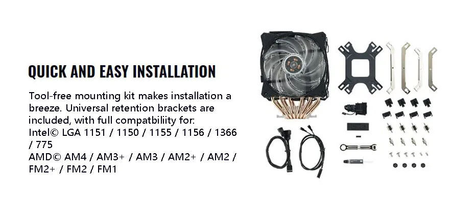 Материал теплоотвода: 6 тепловых труб, CDC 2,0, алюминиевые ребра