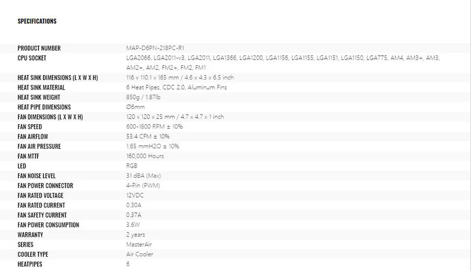 Размеры теплоотвода (Д X Ш X В):116x110,1x165 мм/4,6x4,3x6,5 Дюймов