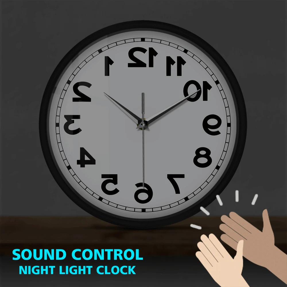 Ночной светильник со звуковым управлениемНет ничего более важного в спальне, офисе или жилом помещении, чем 12 "настенные часы, как это! Блестящий светильник, создающий звук в темноте, вам больше никогда не придется беспокоиться об этом. Через 45 секунд, он выключится, и вы снова в кровать!