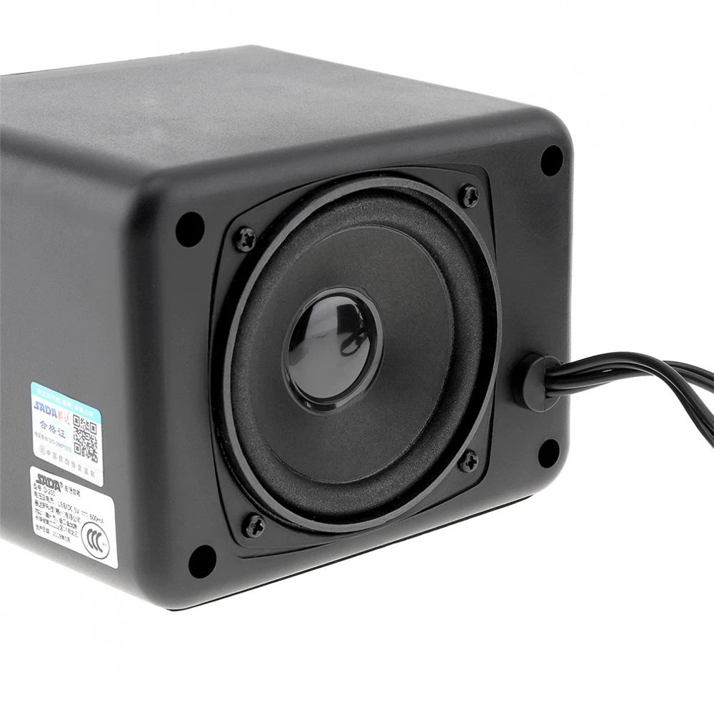D-205 USB2.0 сабвуфер компьютер Динамик с 3,5 мм аудио разъем и USB Мощность разъем порта для настольного ПК ноутбука MP3 мобильного телефона MP4 Материал: АБС-пластик Цвет: черный Выходная мощность: 3 Вт Источник питания: 5 В постоянного тока и 5 В USB Частотная характеристика: 25 Гц-20 кГц Канал: 2,1 Поддержка карты памяти: нет Длина аудиолинии: 1 м/3,2808 дюйма Аудио Интерфейс: 3,5 мм Длина usb-кабеля: 1 м/3,2808 дюйма Форма управления: ручка Поддержка Bluetooth: нет Применимое устройство: компьютер/ноутбук/телефон/MP3 / MP4 Модель: D-205 Степень разделения: >= 40 дБ Отношение сигнал-шум: >= 80 дБ Особенности: -Usb-источник питания, легкое подключение. -Полночастотный Вибрационный громкоговоритель большого диаметра, глубокий бас, богатый средний и четкий тройник. -Задний бас-труба, бас толстый, чтобы принести вам высокое качество басов. -Выключатель питания, прост в использовании. -Отлично работает, края отполированы, гладкая обработка. -Высокий Магнитный динамик, дает вам различный опыт прослушивания. -Можно подключить ПК, ноутбук, мобильный телефон, MP3, MP4 , DVD.