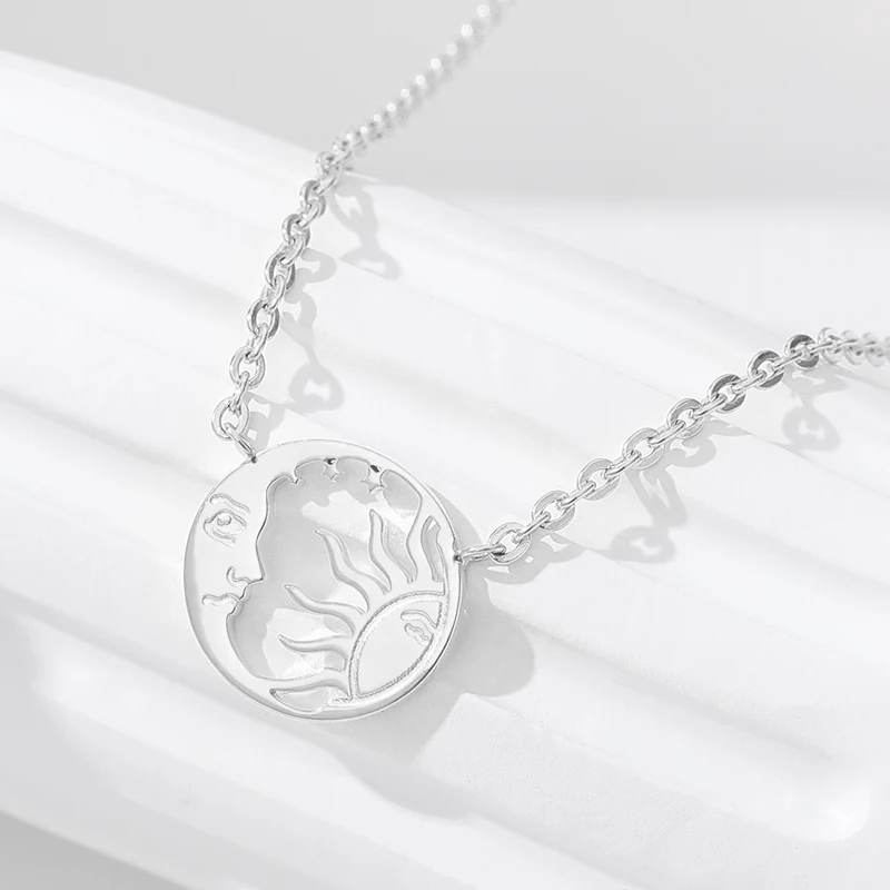 Ожерелье для женщин, винтажная монета с минимальным диском, нержавеющая сталь, Луна и солнце, цепочка, подвески, модные ювелирные изделия, ювелирное изделие, подарок