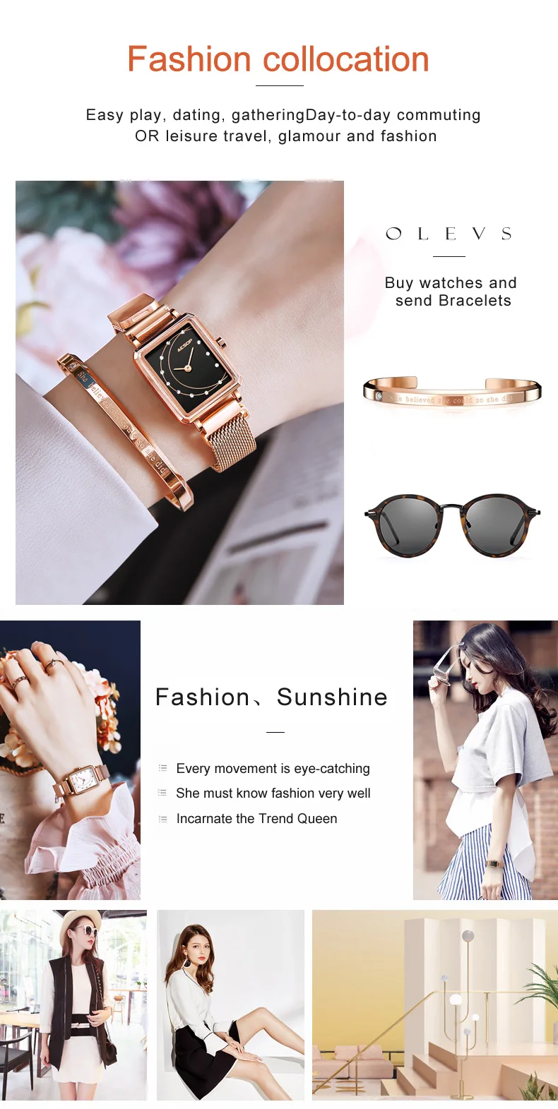 Примечание:Если вы покупаете одни часы, то есть один маленький серебряный и один маленький розовый золотой (Случайная Доставка) браслет для женщин, как показано ниже, для бесплатного подарка.