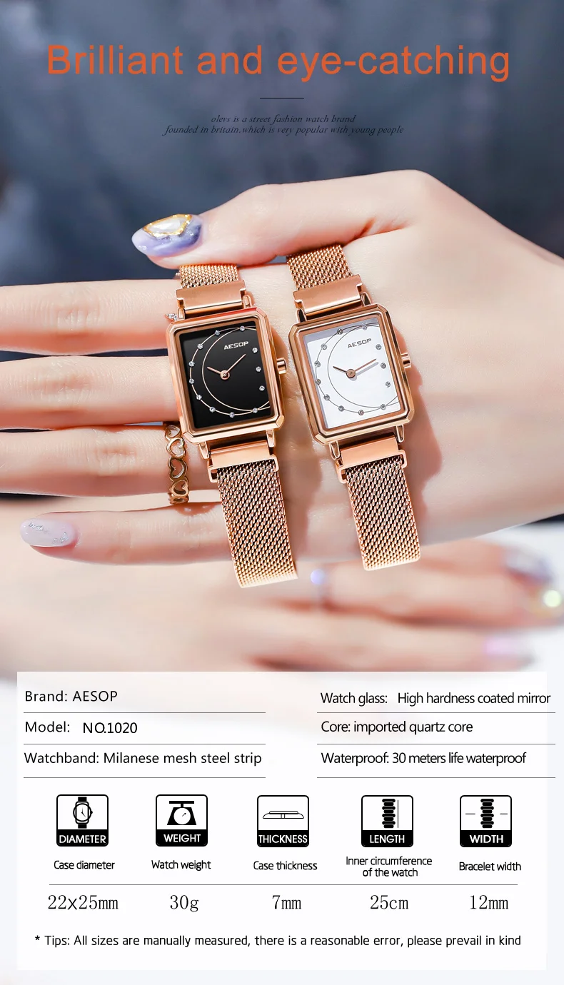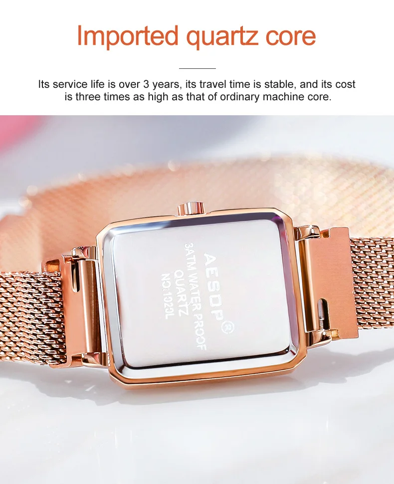 AESOP Брендовые женские модные часы розового золота Женские Роскошные водонепроницаемые повседневные кварцевые наручные часы с браслетом Relogio Feminino