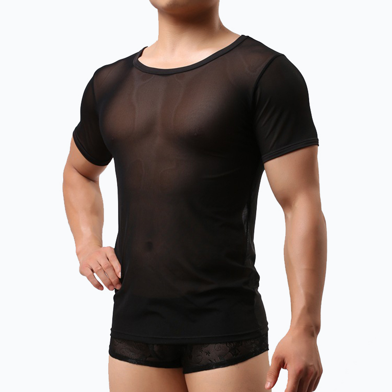Горячие сексуальные мужские повседневные стильные сетчатые рубашки, с круглым вырезом, с коротким рукавом.