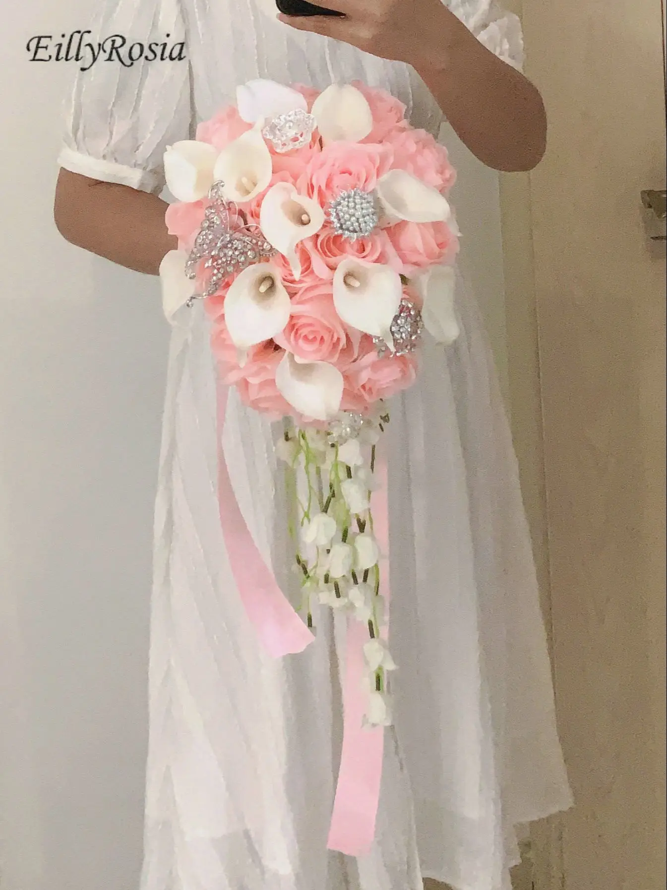 EillyRosia Новое поступление Каскадный розовый свадебный букет Cala Lily слеза капля элегантный водопад Свадебный букет для невесты цветы