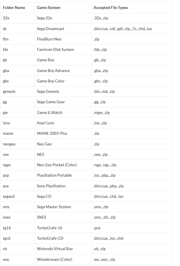 To install games, please follow the game file format corresponding to the list.