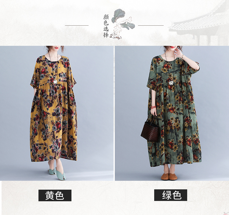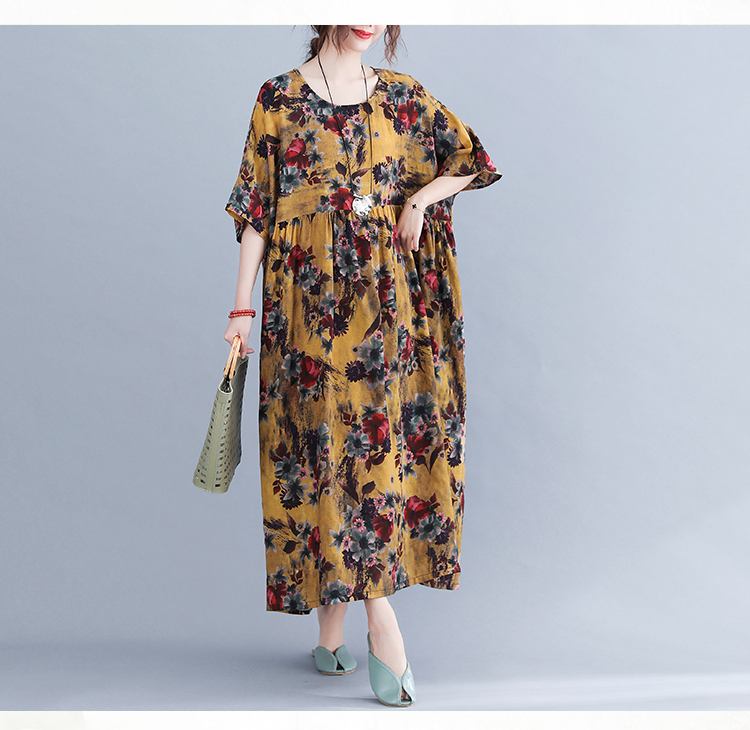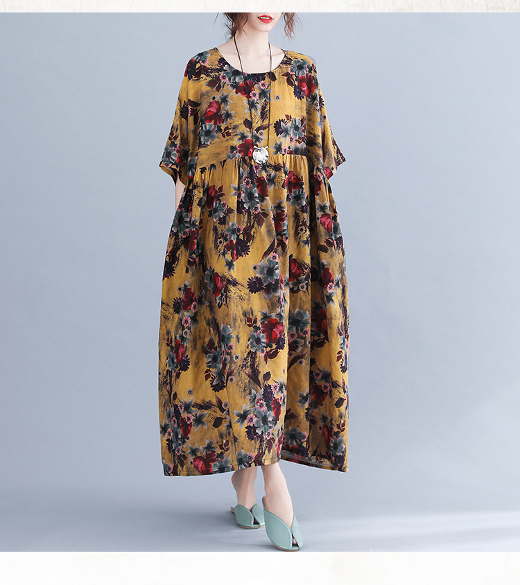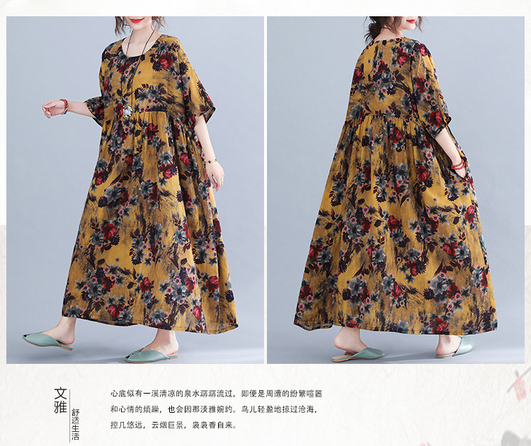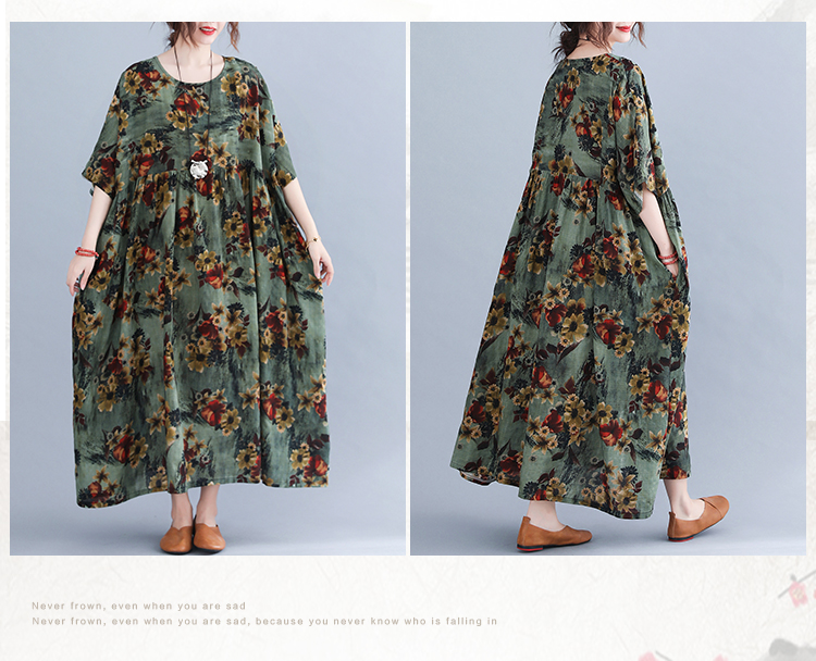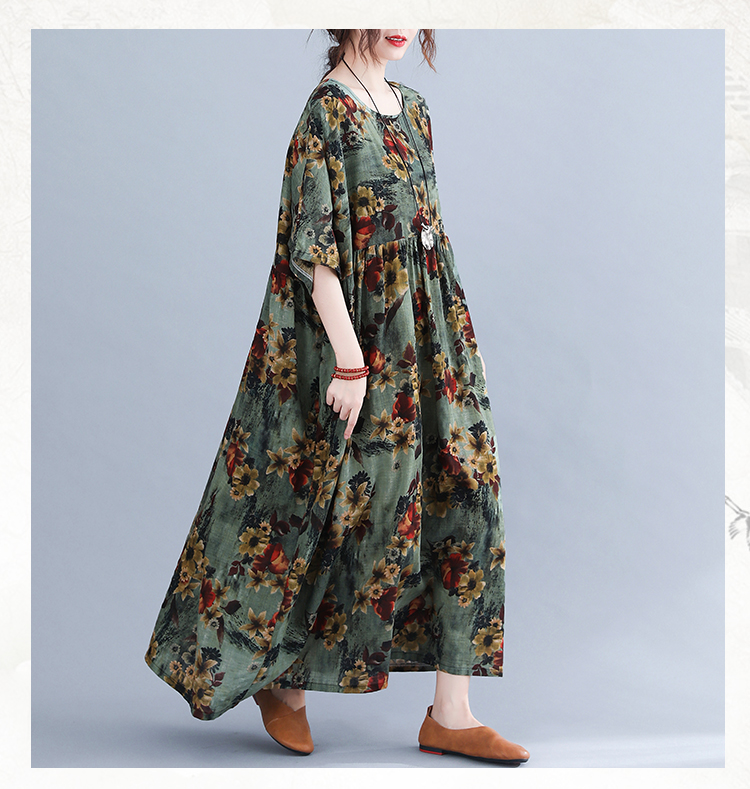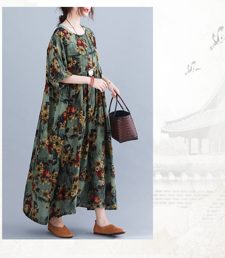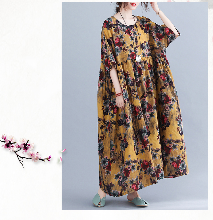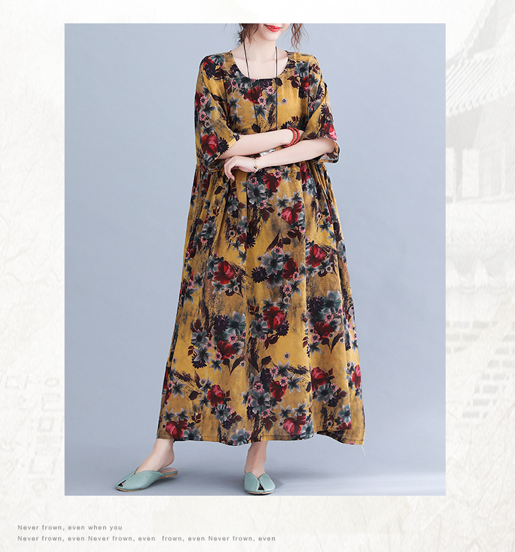 Женское винтажное платье с принтом повседневное свободное черное длинным