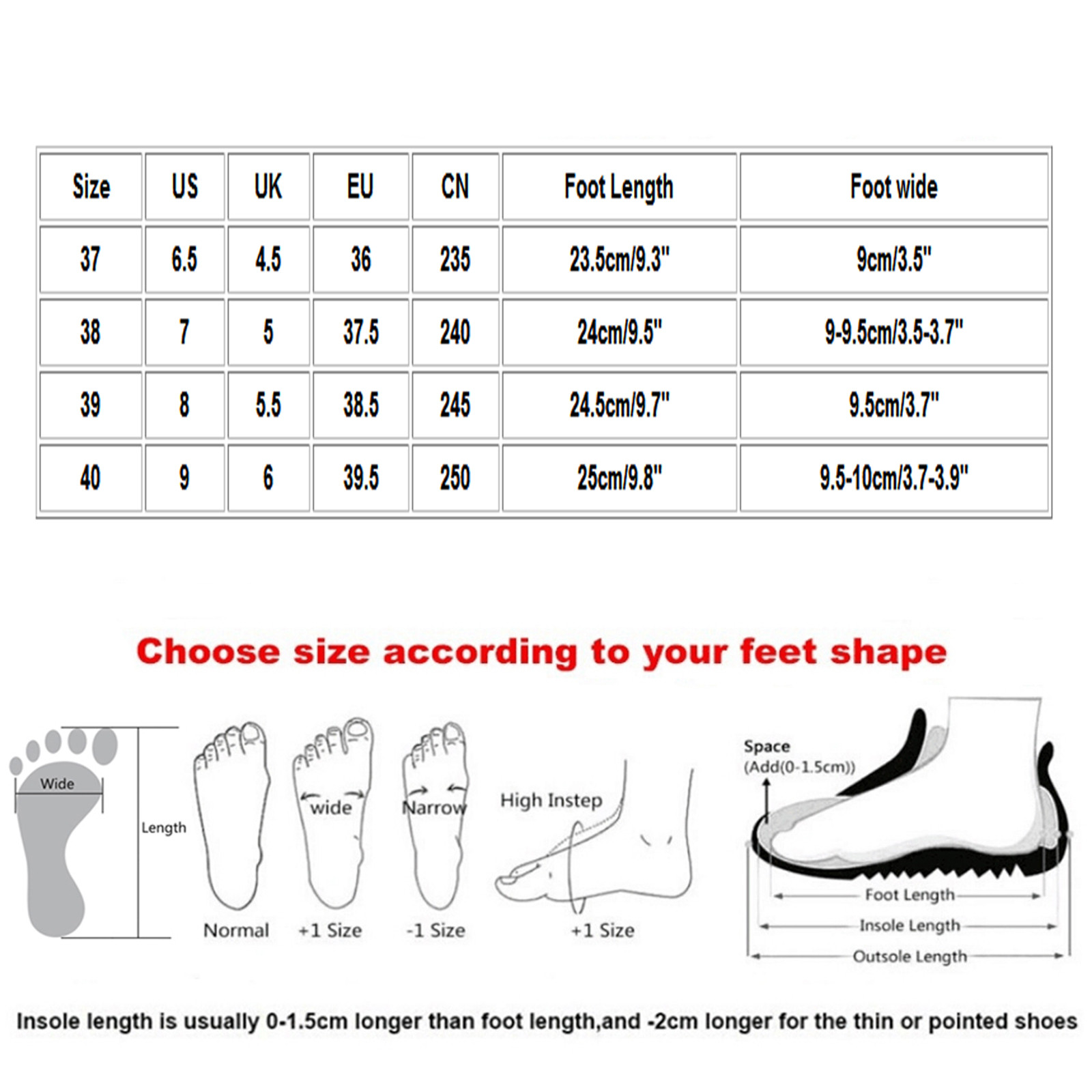 Теплое напоминание:Различные стили обуви, пожалуйста, выберите размер в соответствии с типом вашей стопы