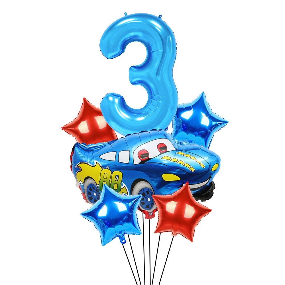 6 шт. большой размер мультяшный автомобиль фольги воздушный шар набор синий красный 32 дюйма номер звезда гелиевые глобусы день рождения декоративный шар для вечеринки мальчик игрушки