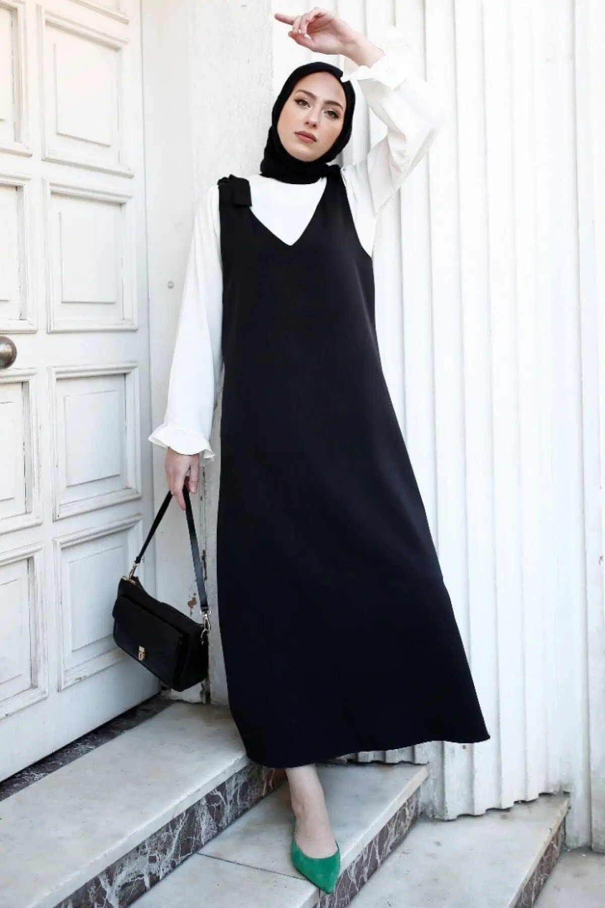 Наш продукт, изготовленный из креп-ткани, длиной около 130 см. V-образный вырез. Он имеет 2 размера, 36-38 и 40-42 экс. Когда 36 размер заказан, размер 36-38 отправляется. Размеры манекена: рост 167 см, 54 кг, 38 размер