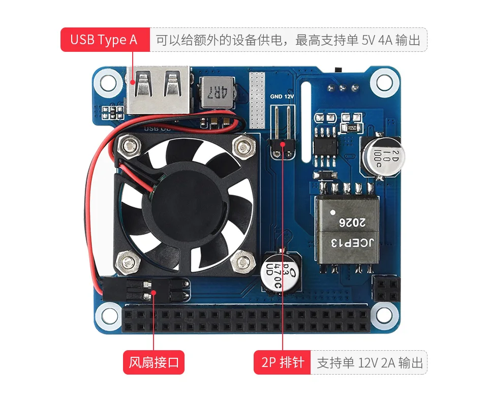 Соответствует источнику питания Raspberry Pi, а также обеспечивает питание для дополнительного оборудования
