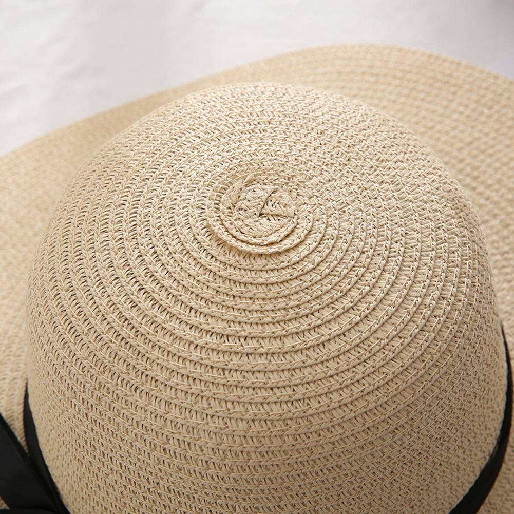 Women Summer Travel Beach UV Protection Bowknot Wide Brim Straw Hat Sun Cap