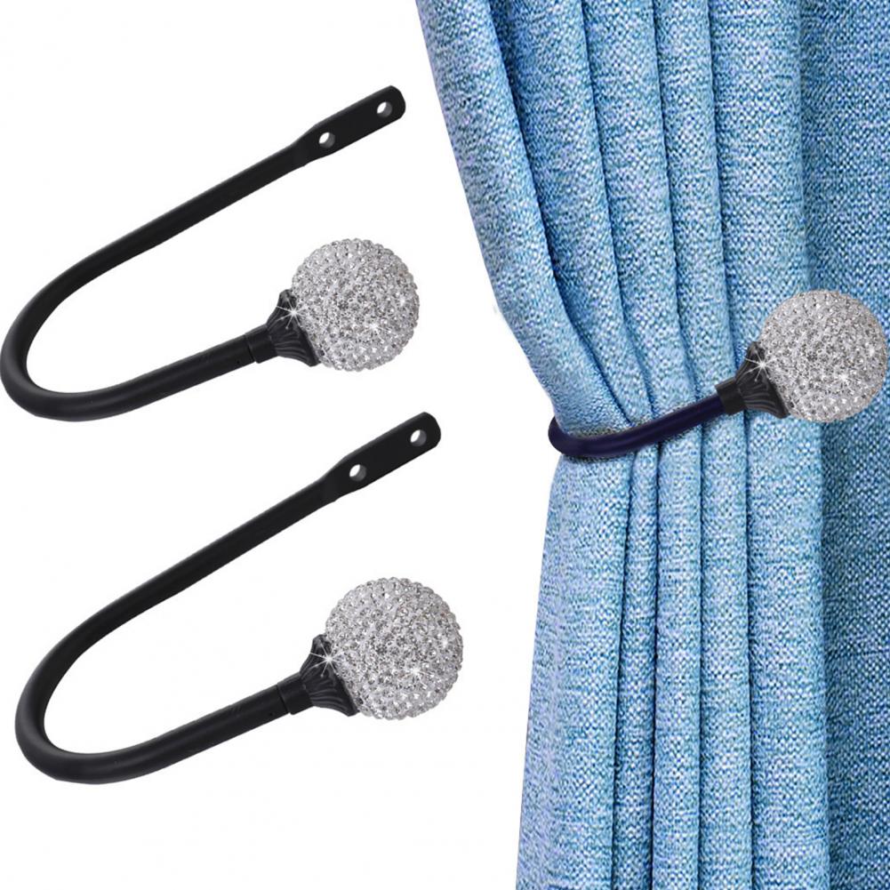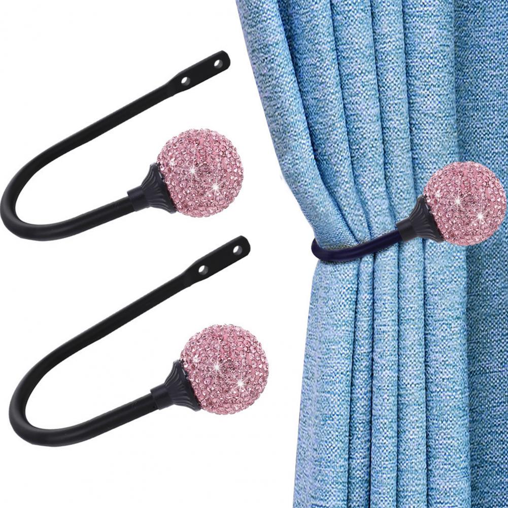 1 Pair Multifunctional Rhinestone Ball Loop Holder Home Curtain Holdback Drapery Tieback