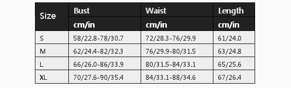 Размер::S | Бюст (см)::58/22.8-78/30.7 | Талия (см)::1/72/28-1/76/29 | Длина (см/дюйм)::61/24 |