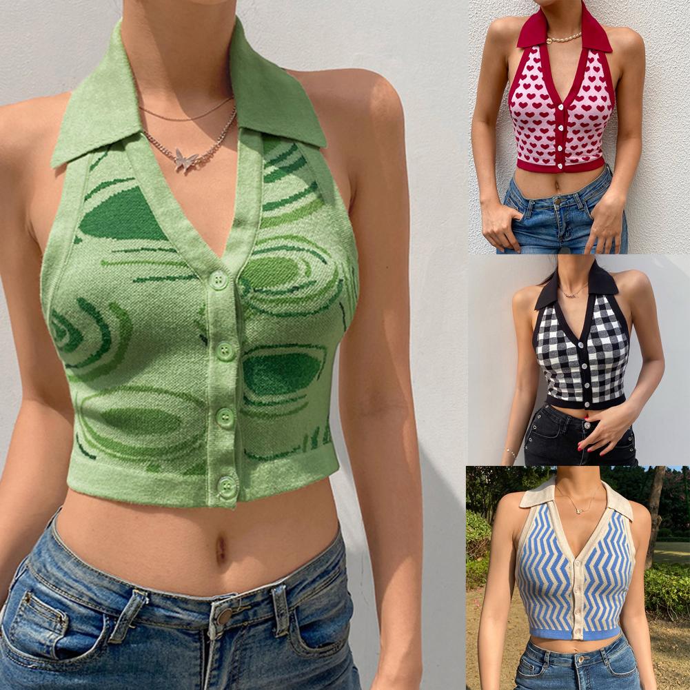 Необычный дизайн с лямкой на шее и v-образным вырезом; Этот летний топ очень пикантный и очаровательный.