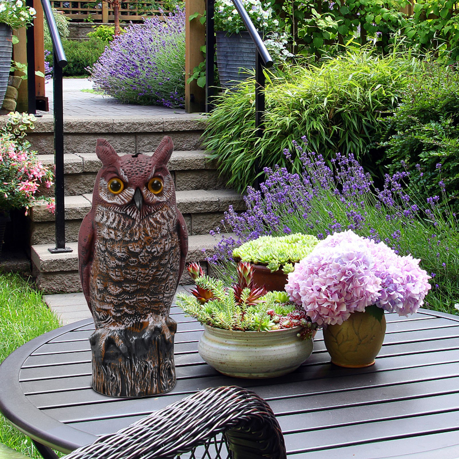Избавьтесь от птиц и вредителей гуманно, не нанося им вреда. Также можно легко разместить пластиковую сову на палке или столбе с полым дном.