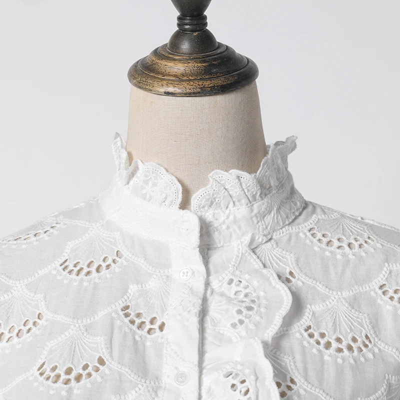 Женская кружевная блузка с длинным рукавом и воротником-стойкой винтажная белая