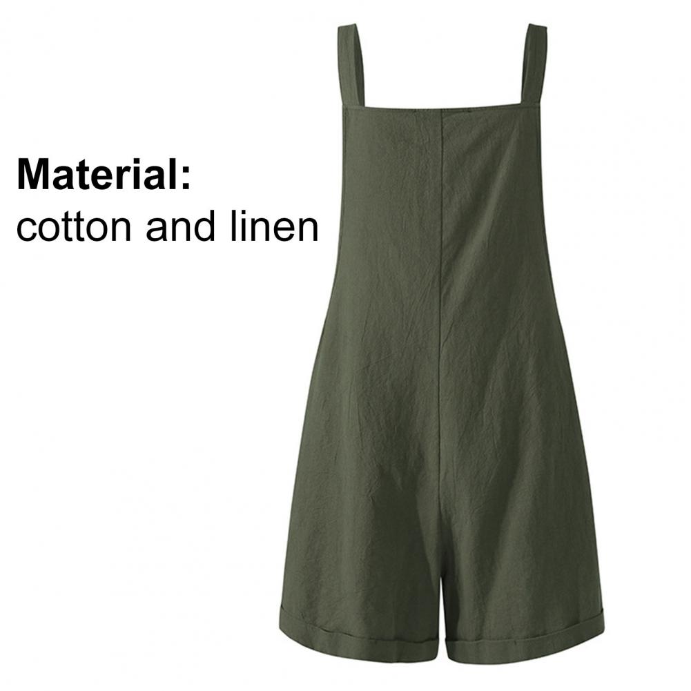 Women Jumpsuit Sleeveless Pocket Solid Color Adjustable Buttons Suspender Romper Playsuit for Summer