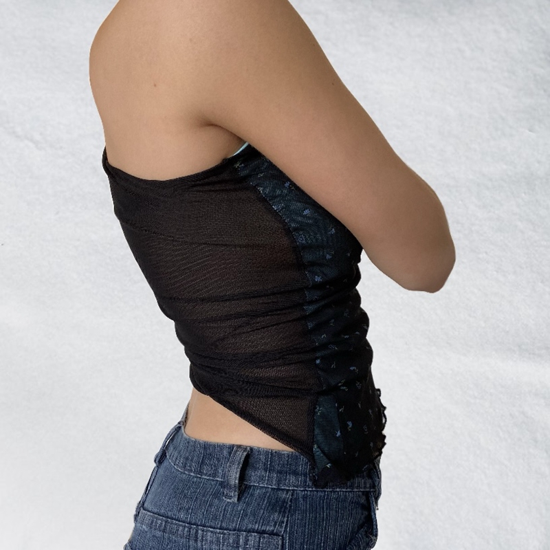 Женский кружевной топ с блестками однотонный без рукавов кружевным воротником и