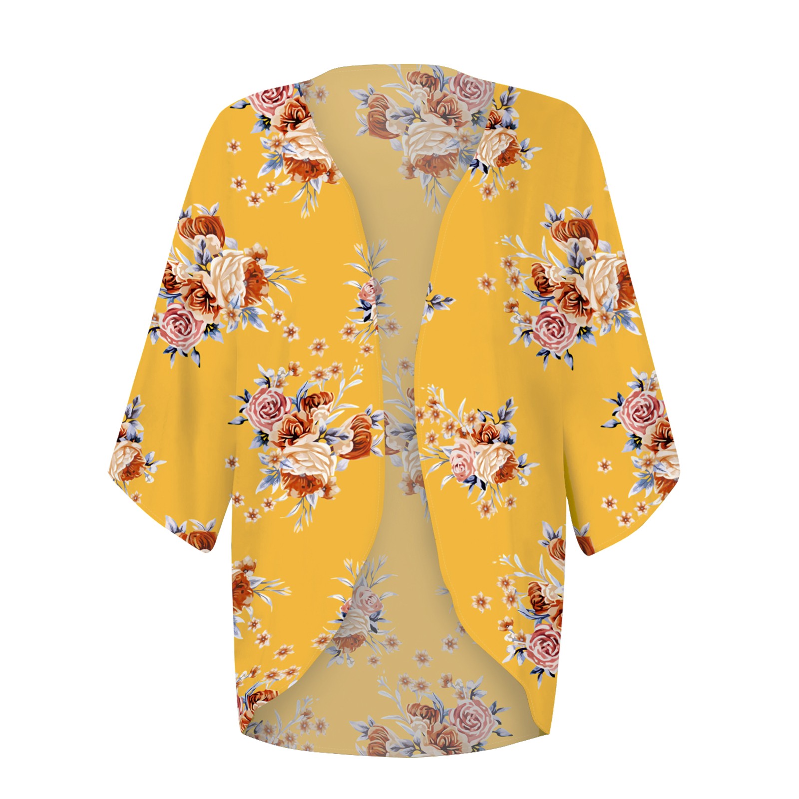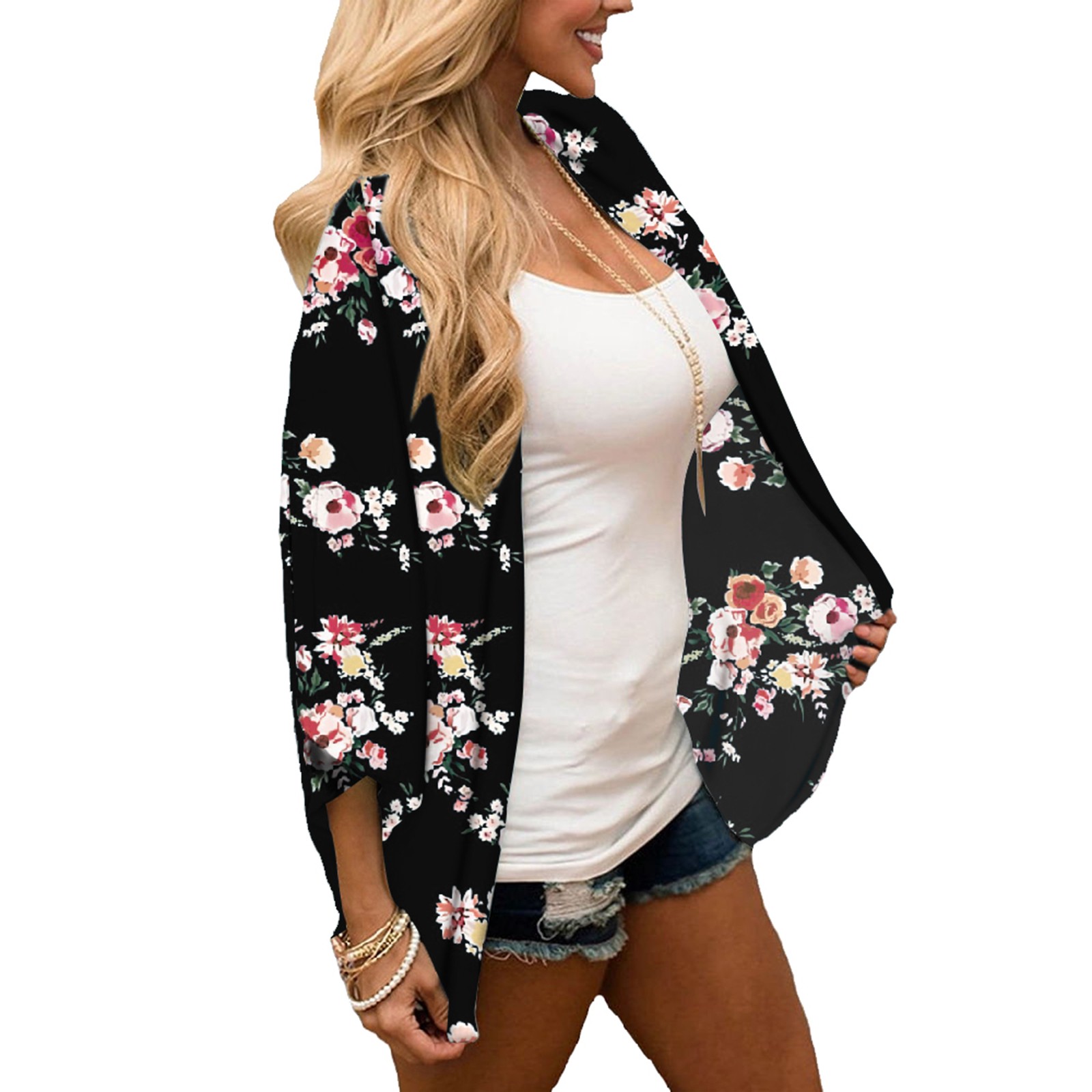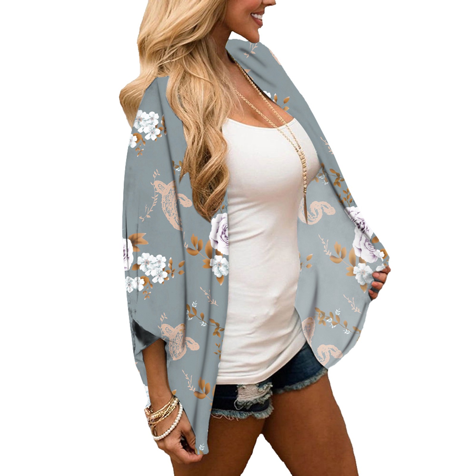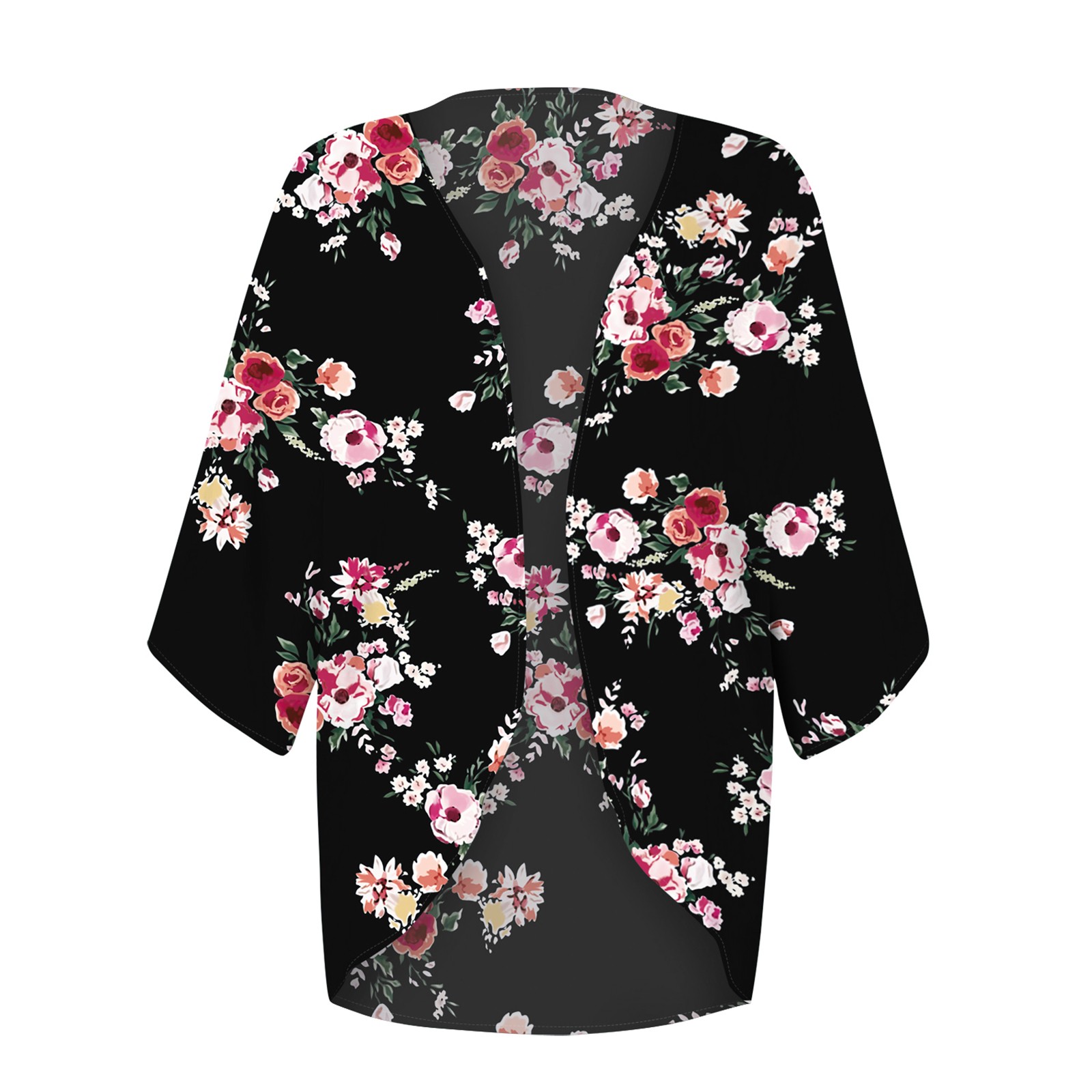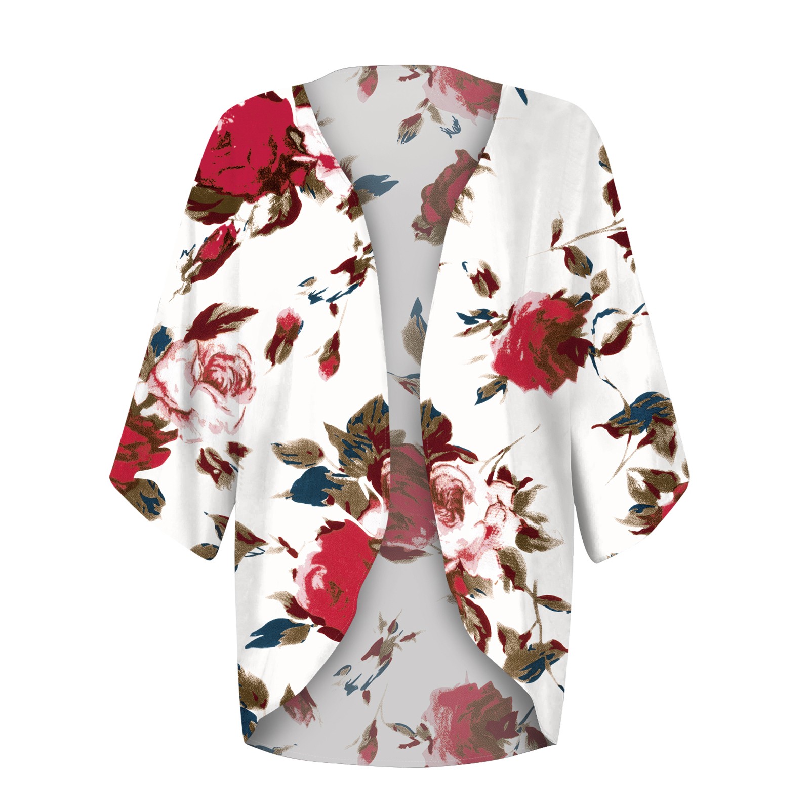 2.Floral Cardigan,Casual summer plus size tops,Kimono beach cover ups,Chiffon shirts,Open Front,Loose Puff Sleeve