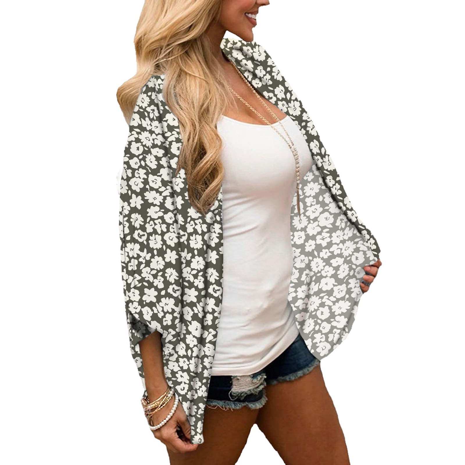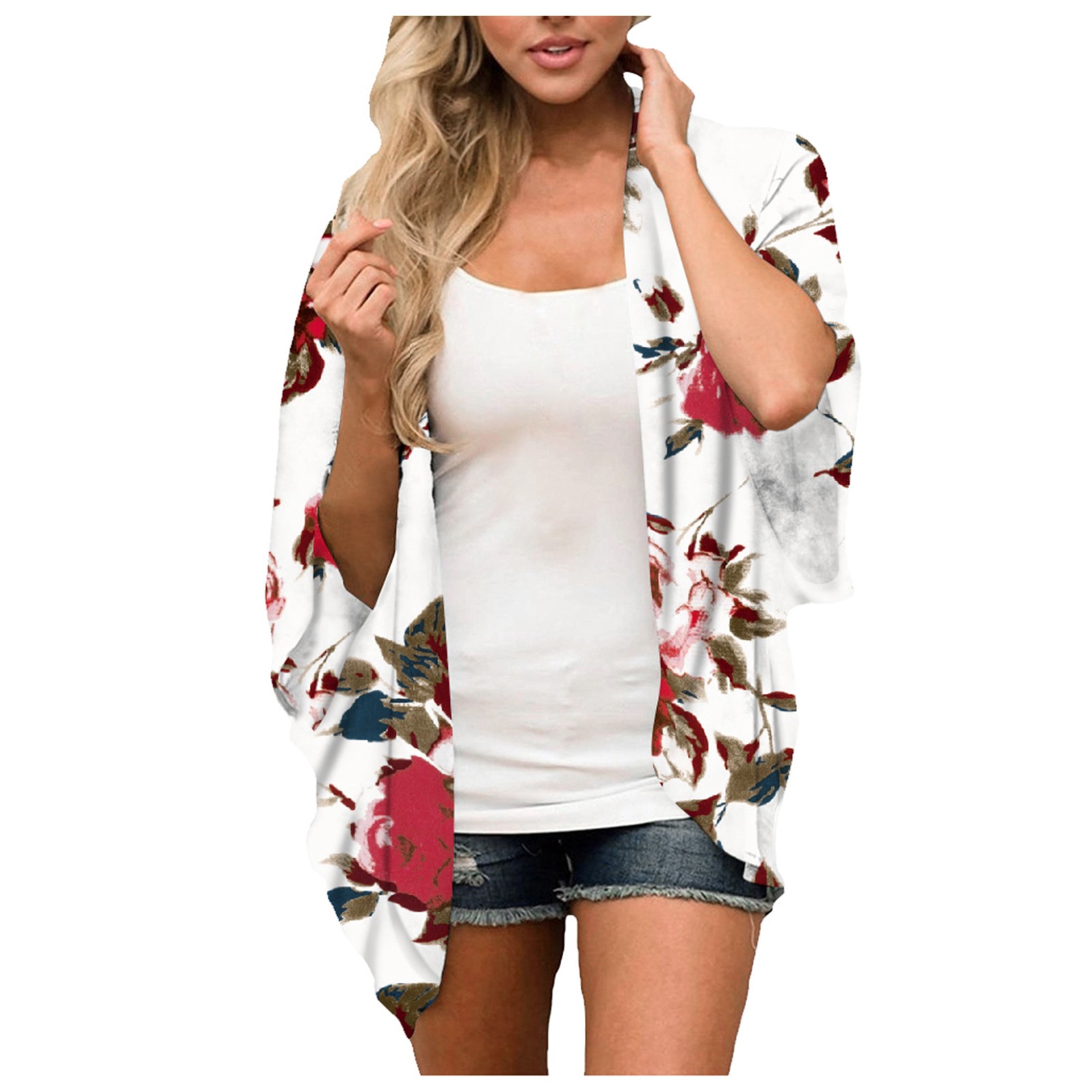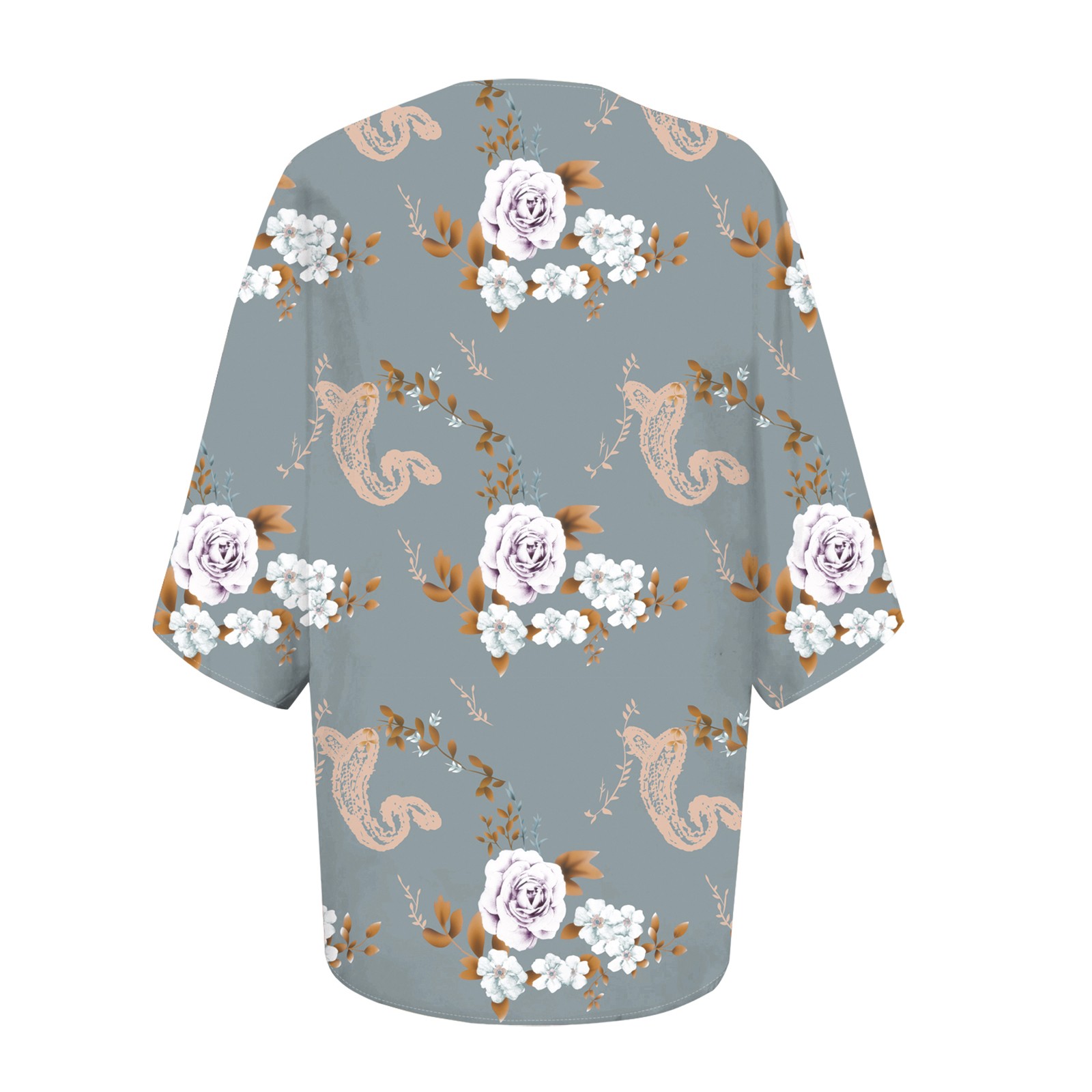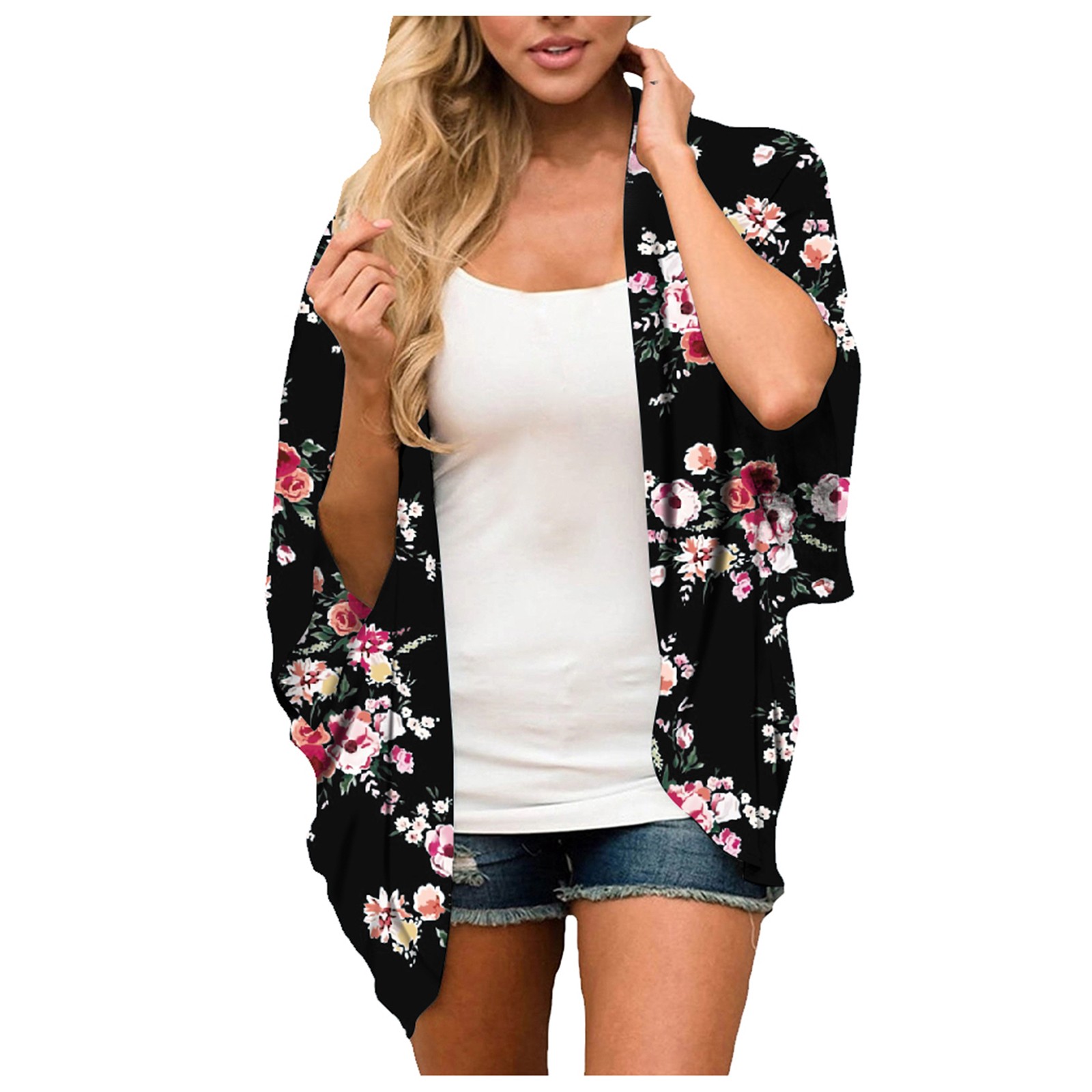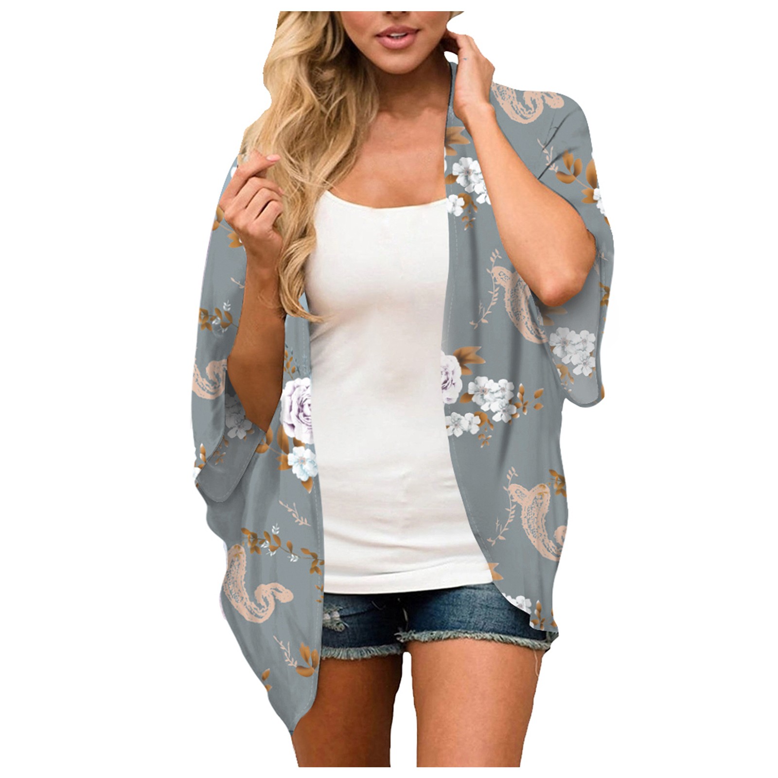 2.Floral Cardigan,Casual summer plus size tops,Kimono beach cover ups,Chiffon shirts,Open Front,Loose Puff Sleeve