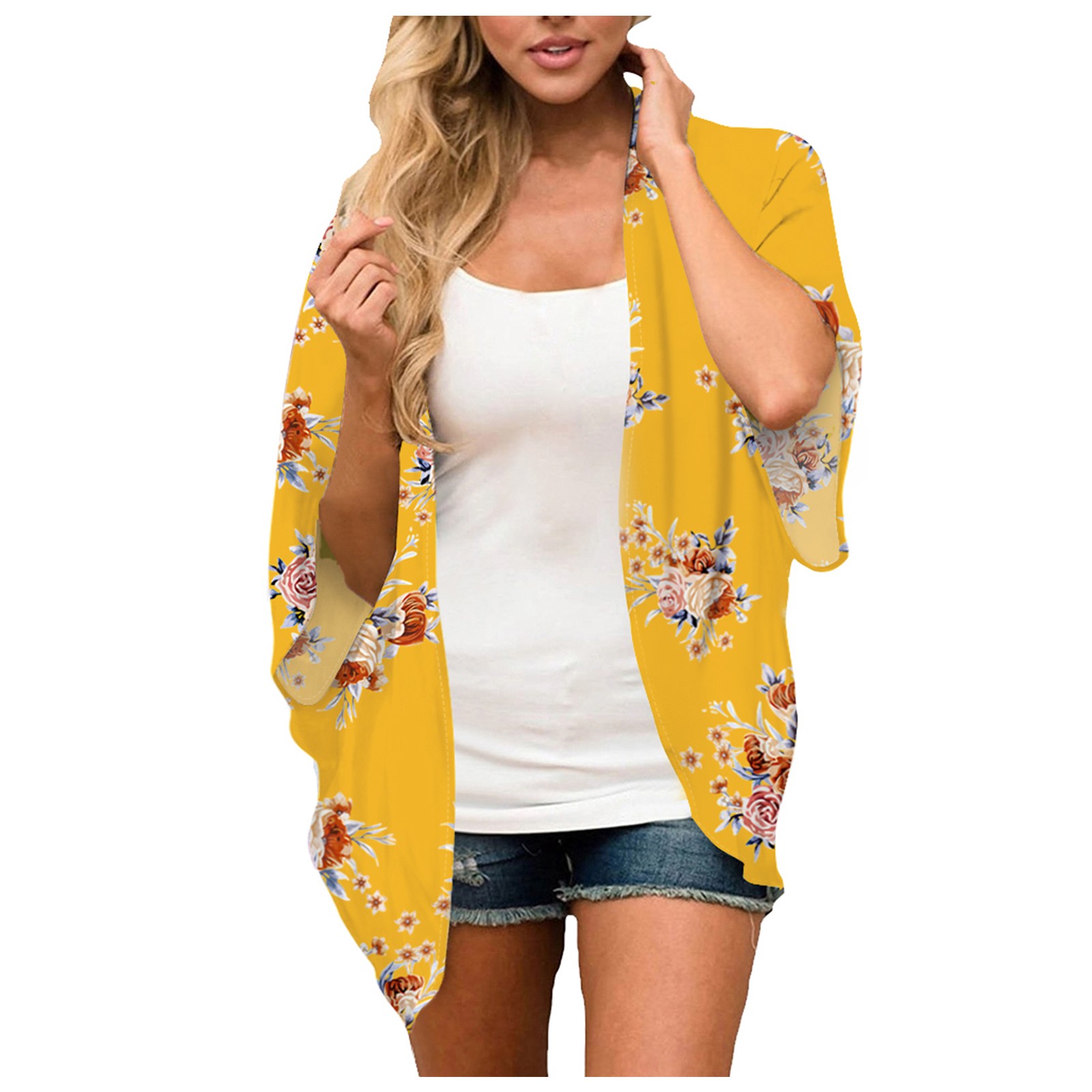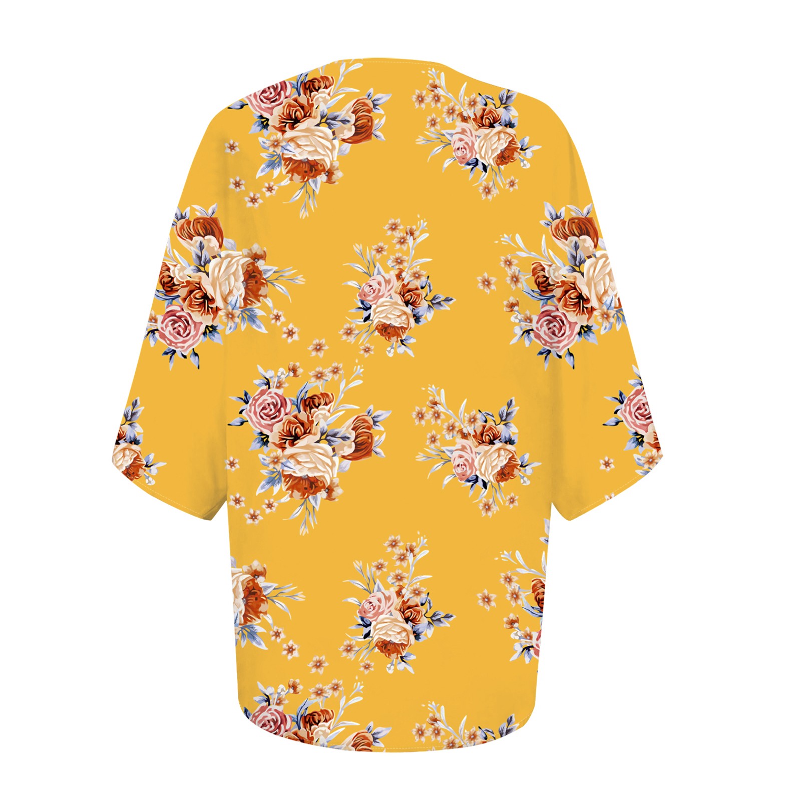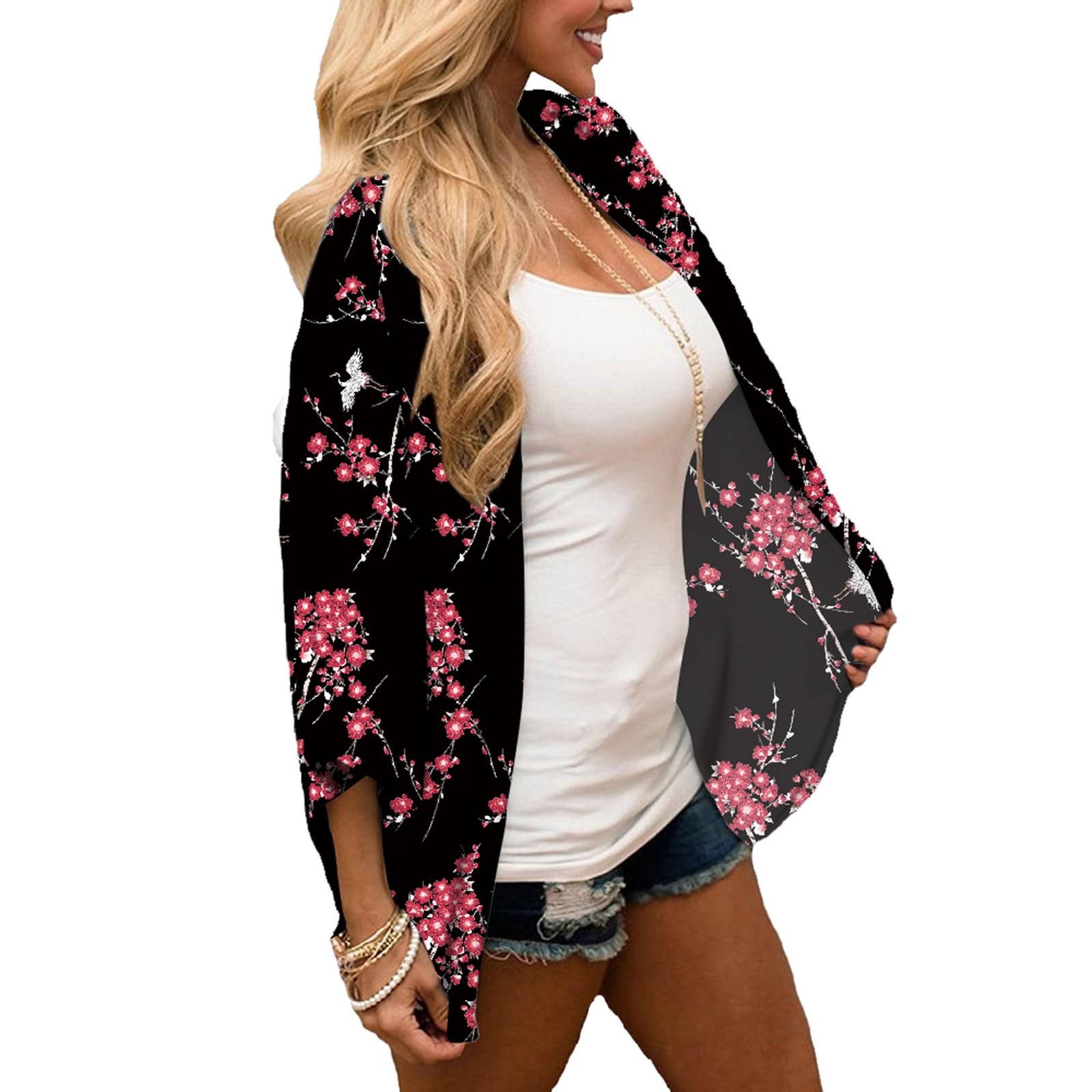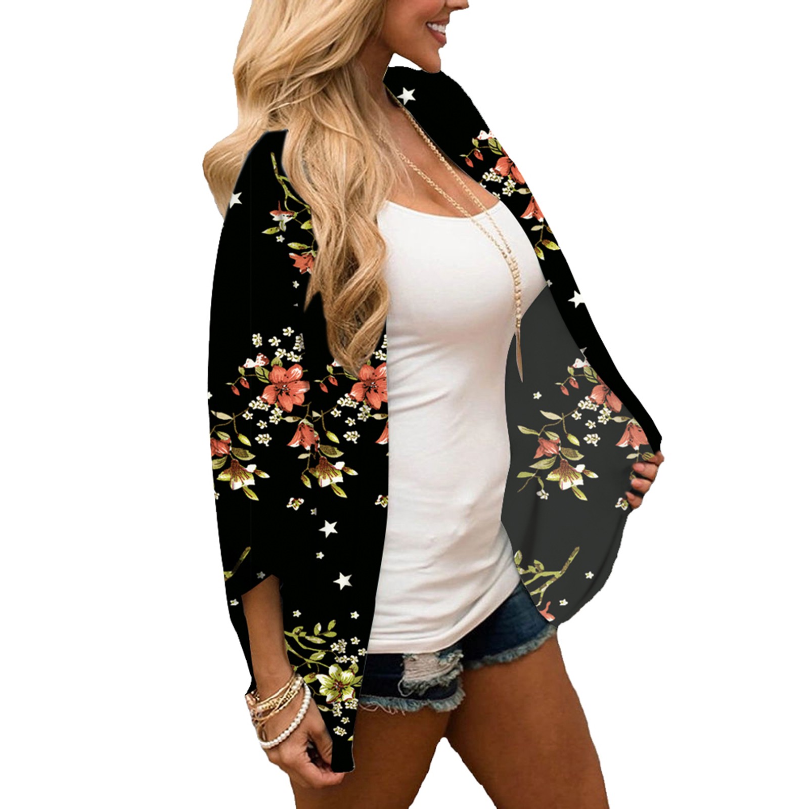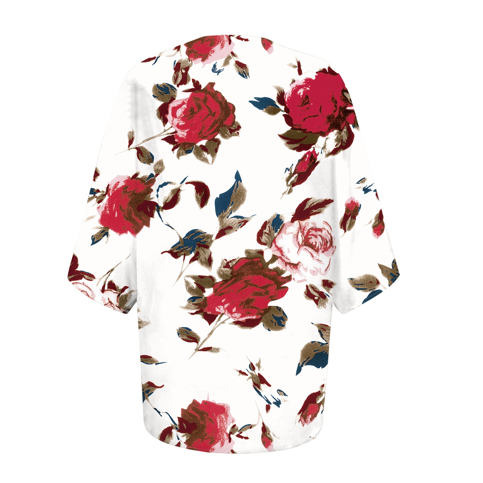 2.Floral Cardigan,Casual summer plus size tops,Kimono beach cover ups,Chiffon shirts,Open Front,Loose Puff Sleeve