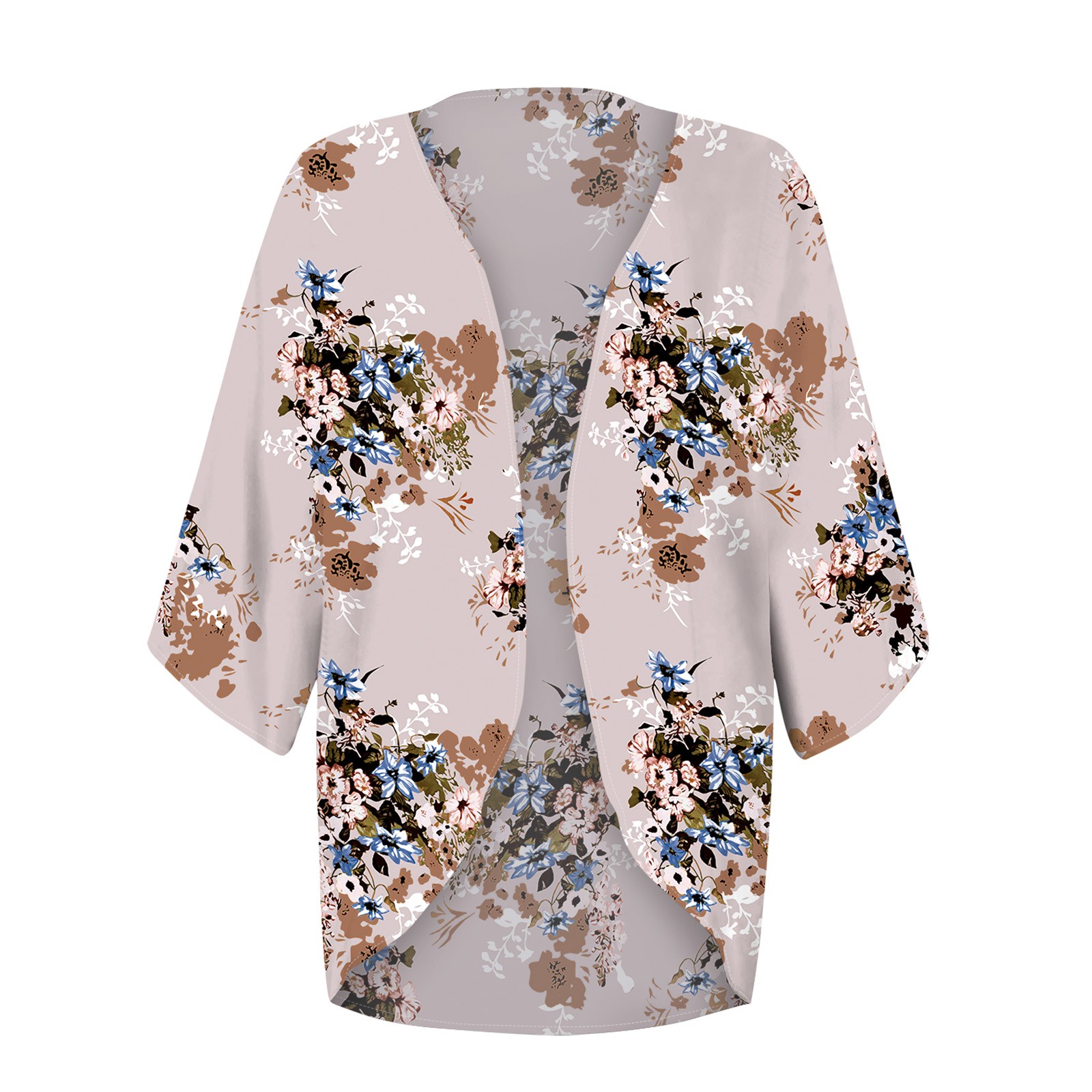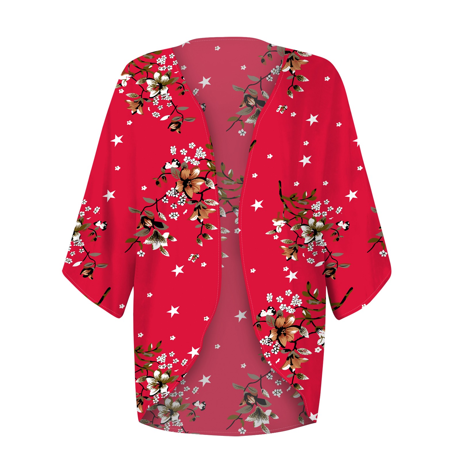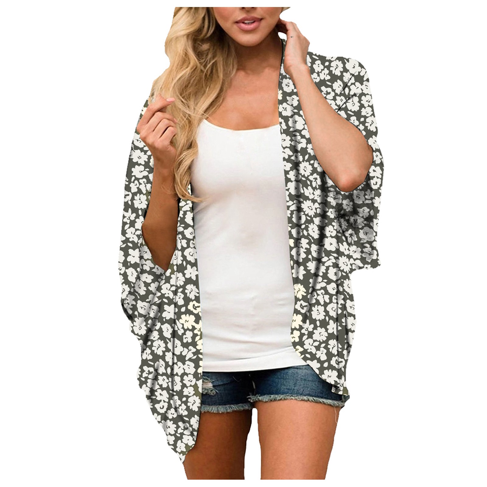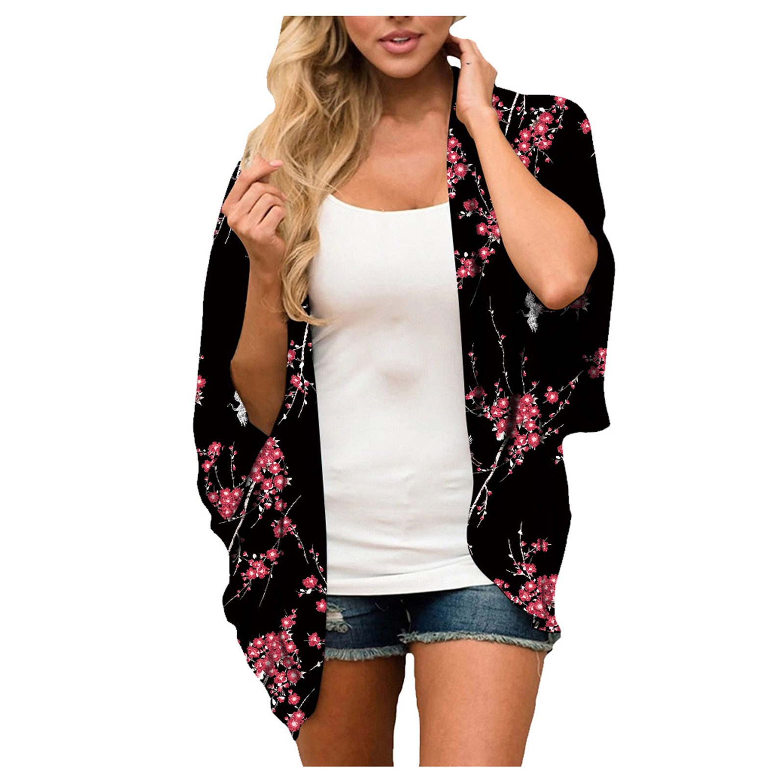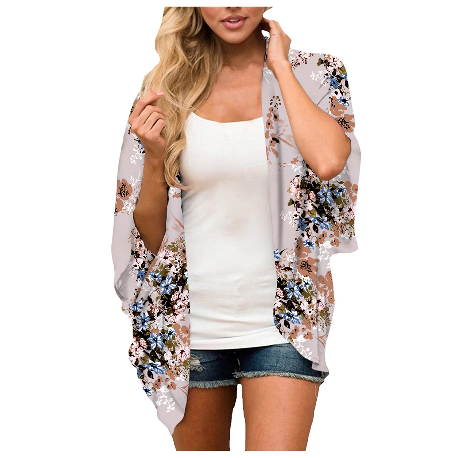 2.Floral Cardigan,Casual summer plus size tops,Kimono beach cover ups,Chiffon shirts,Open Front,Loose Puff Sleeve