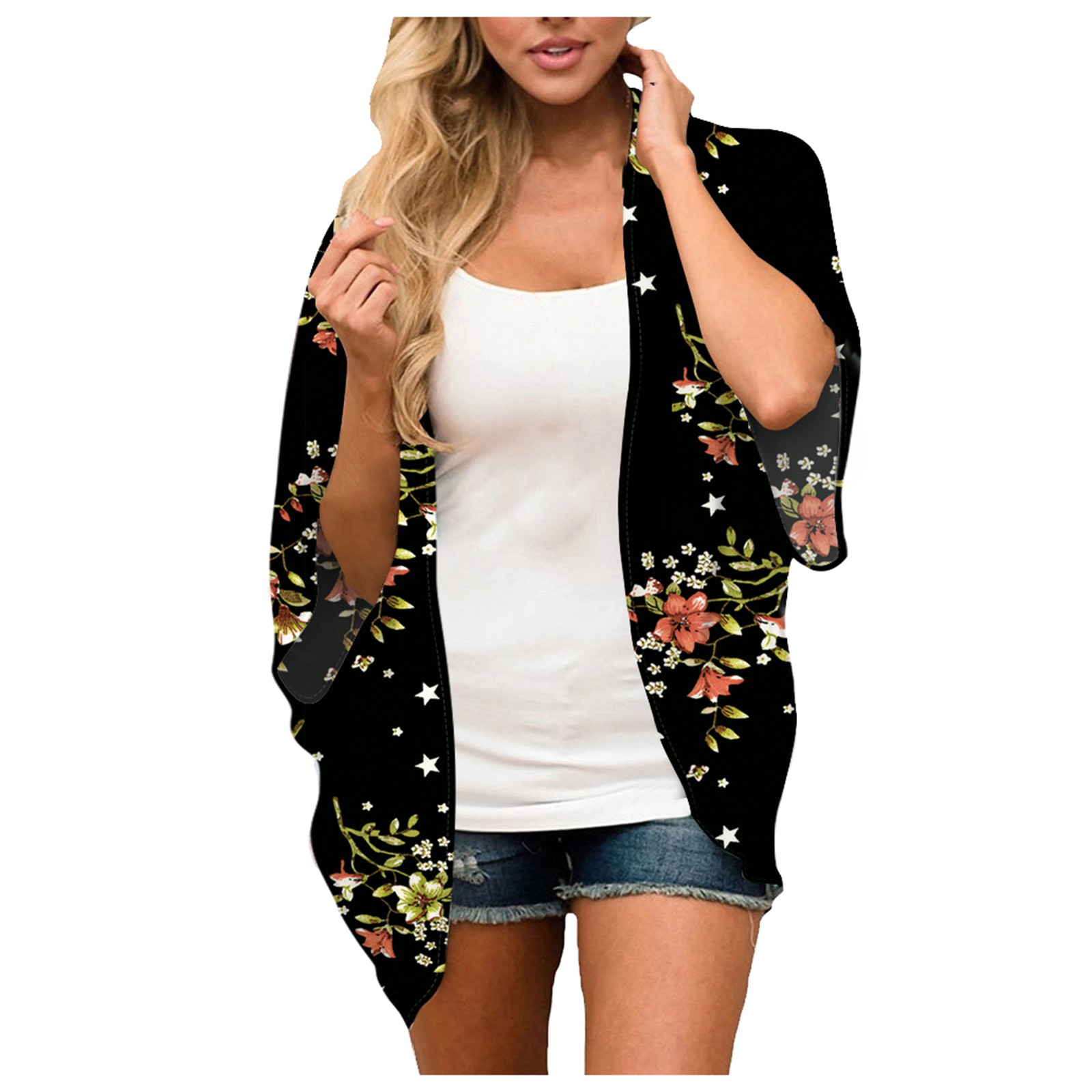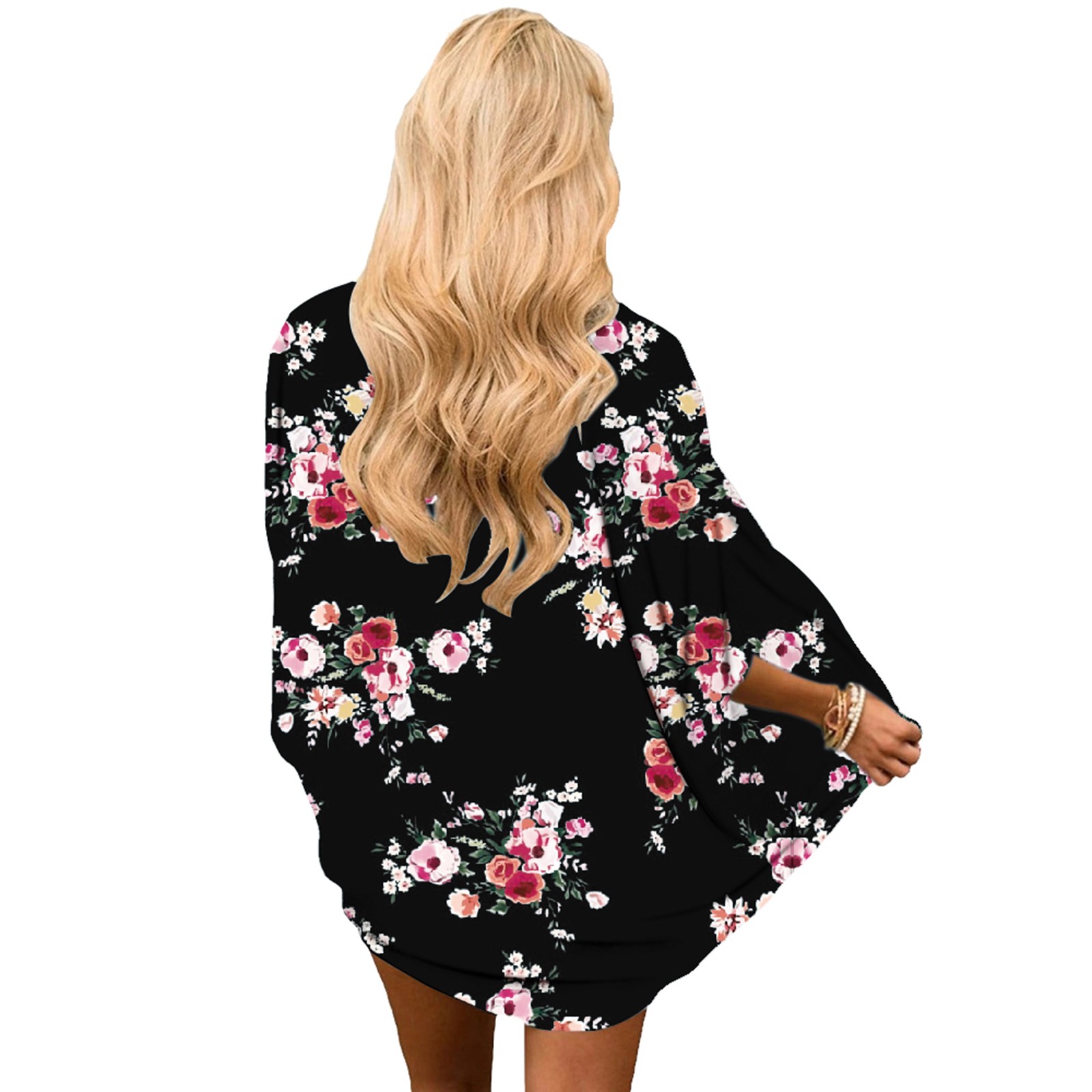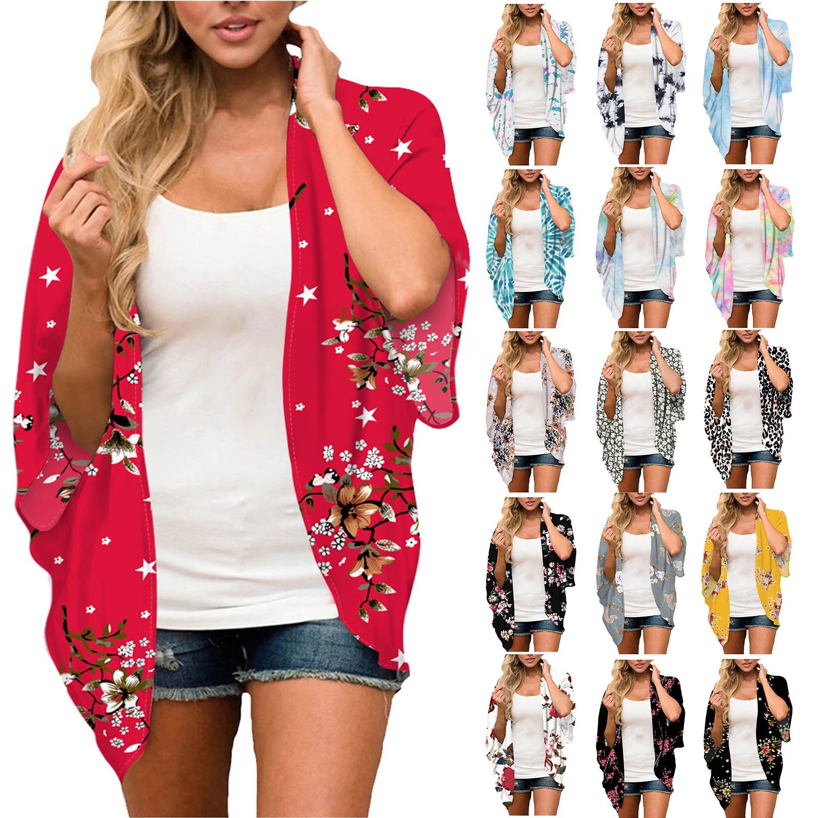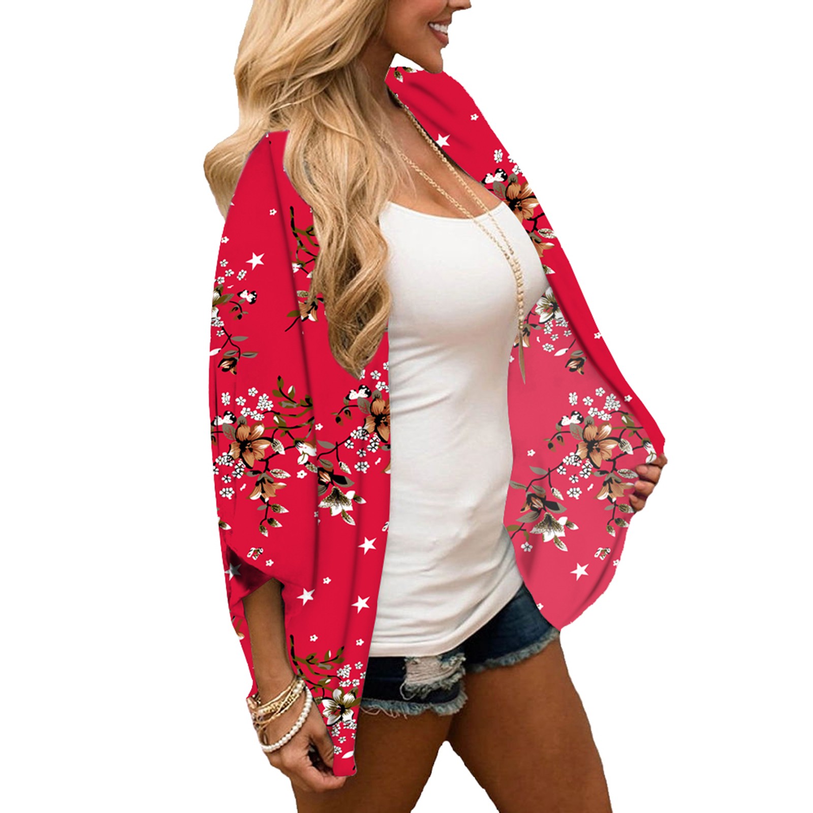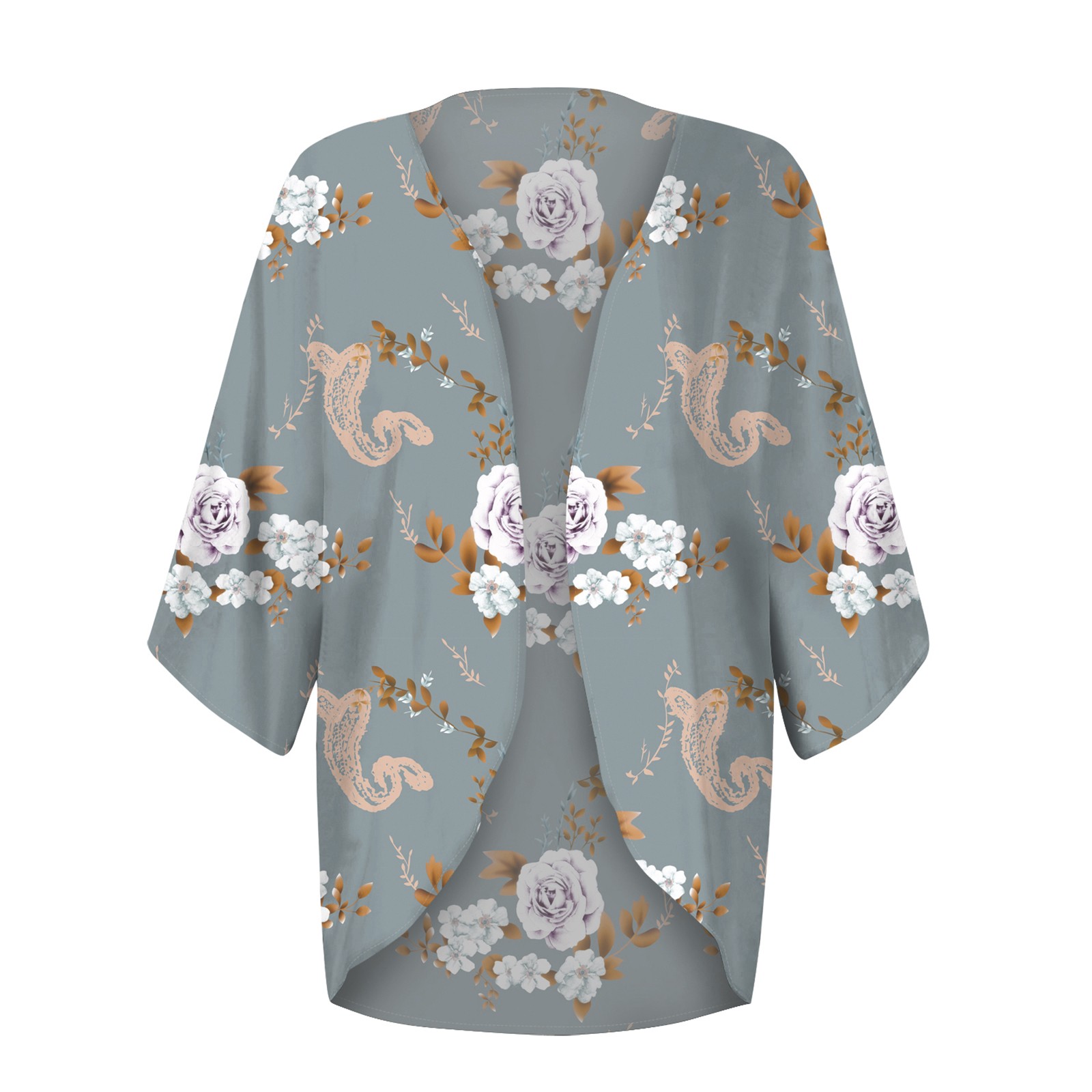 2.Floral Cardigan,Casual summer plus size tops,Kimono beach cover ups,Chiffon shirts,Open Front,Loose Puff Sleeve