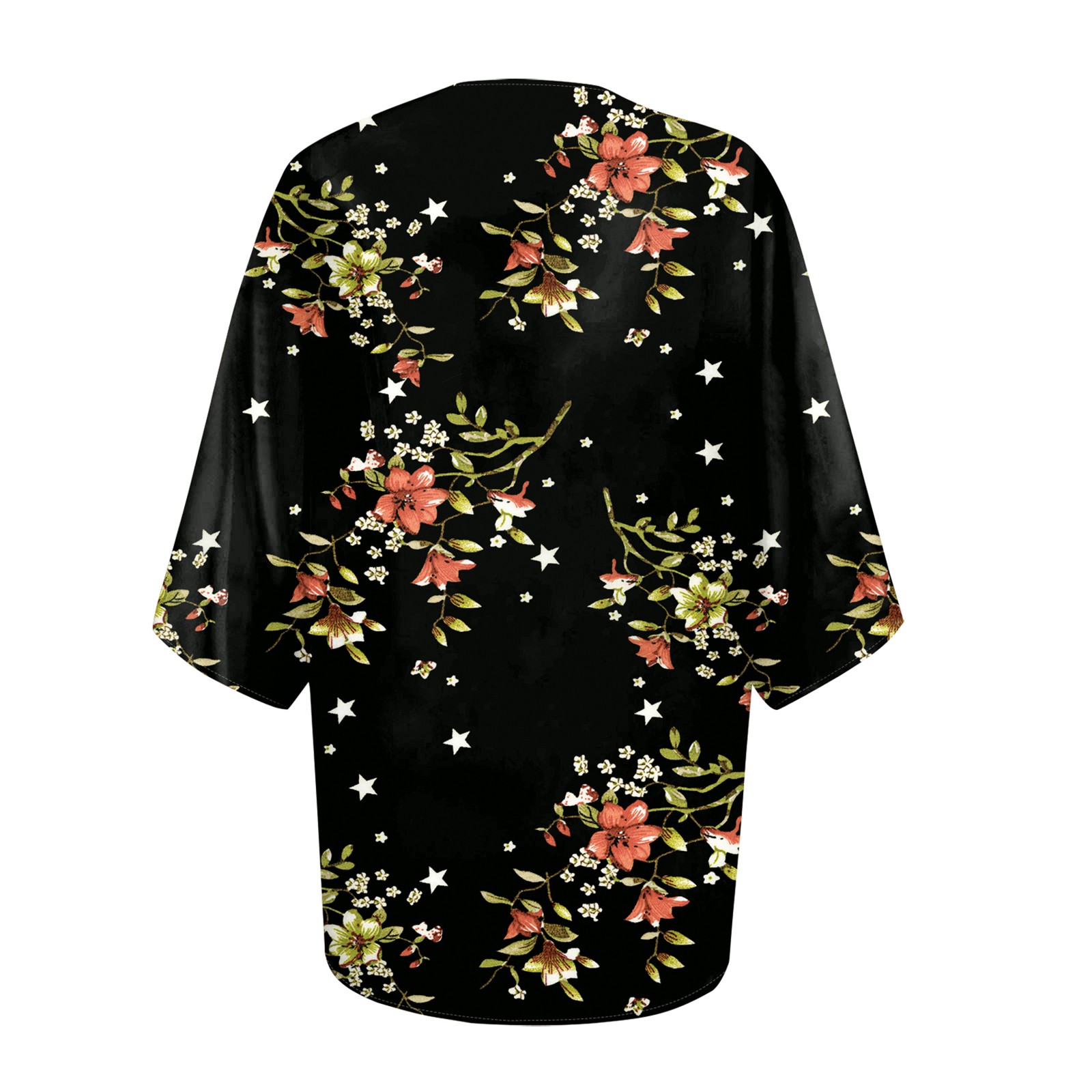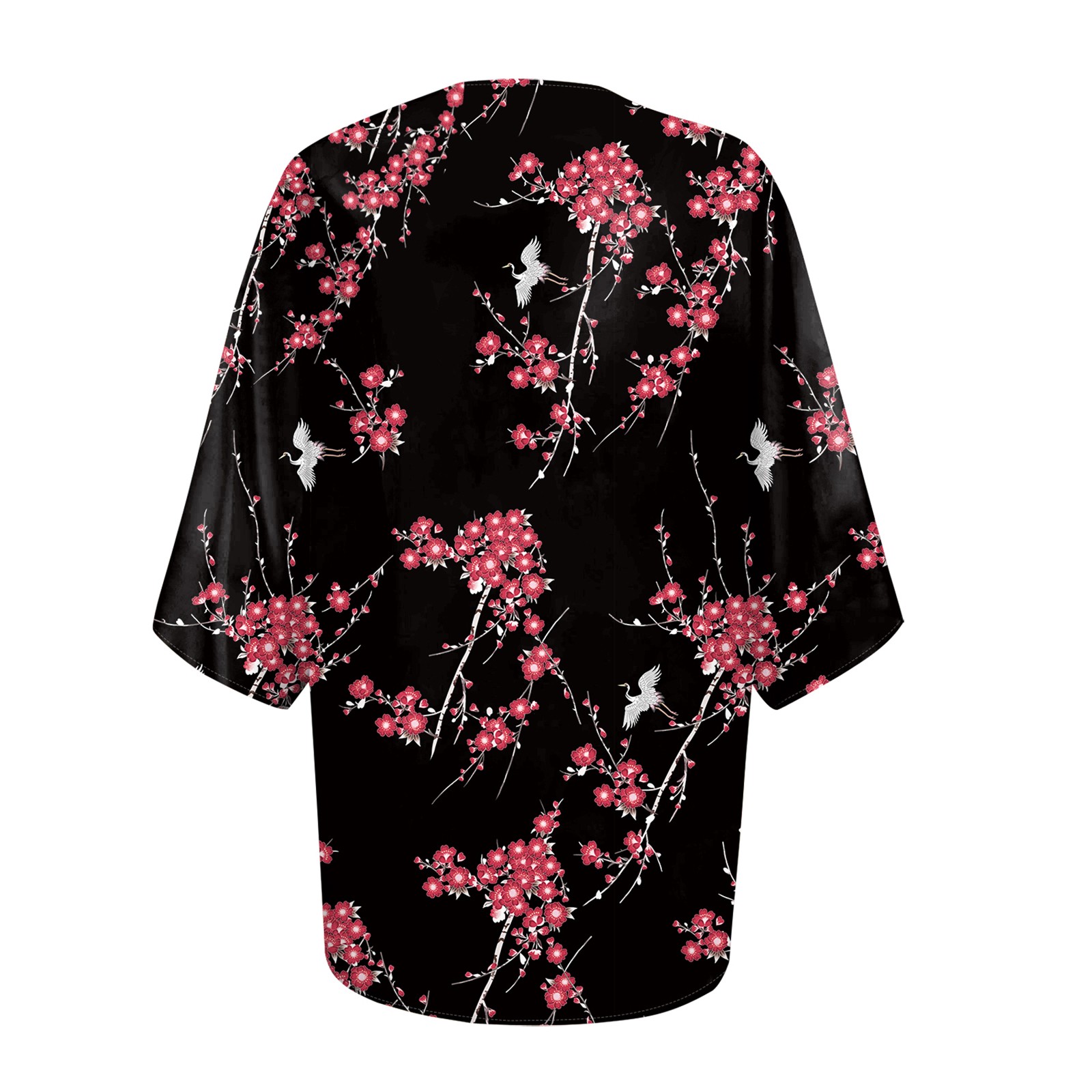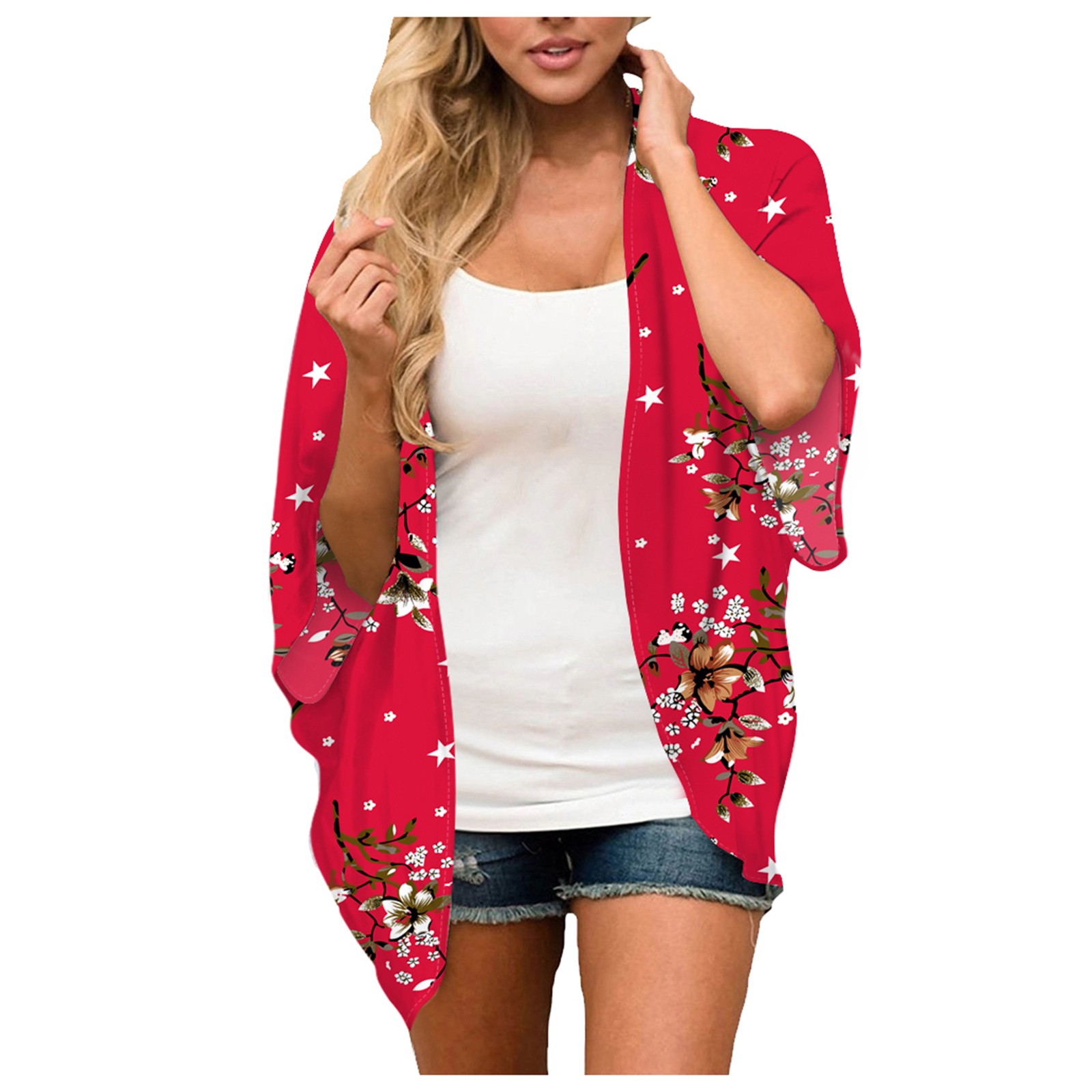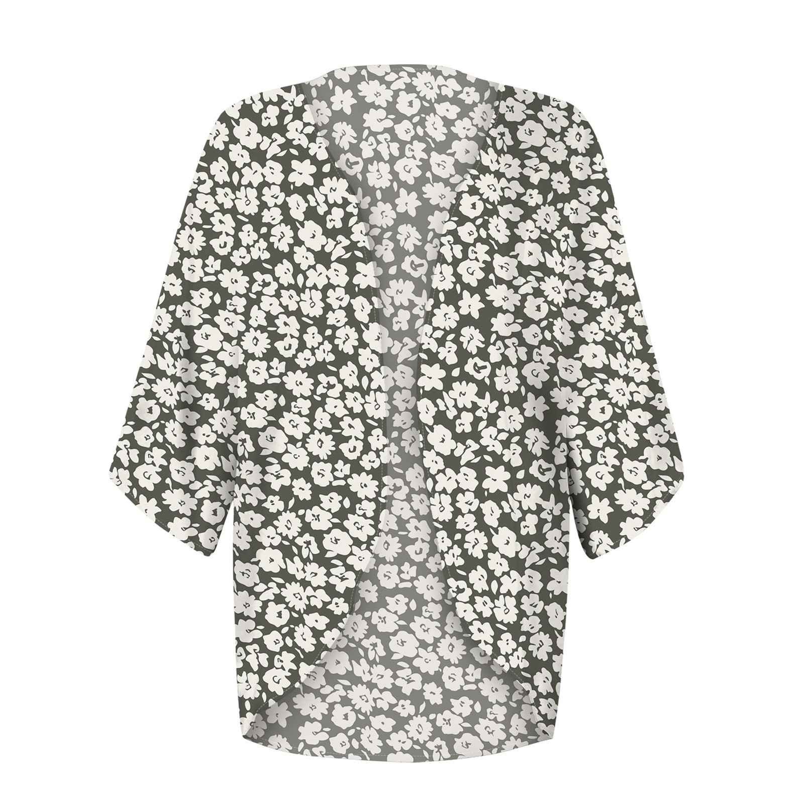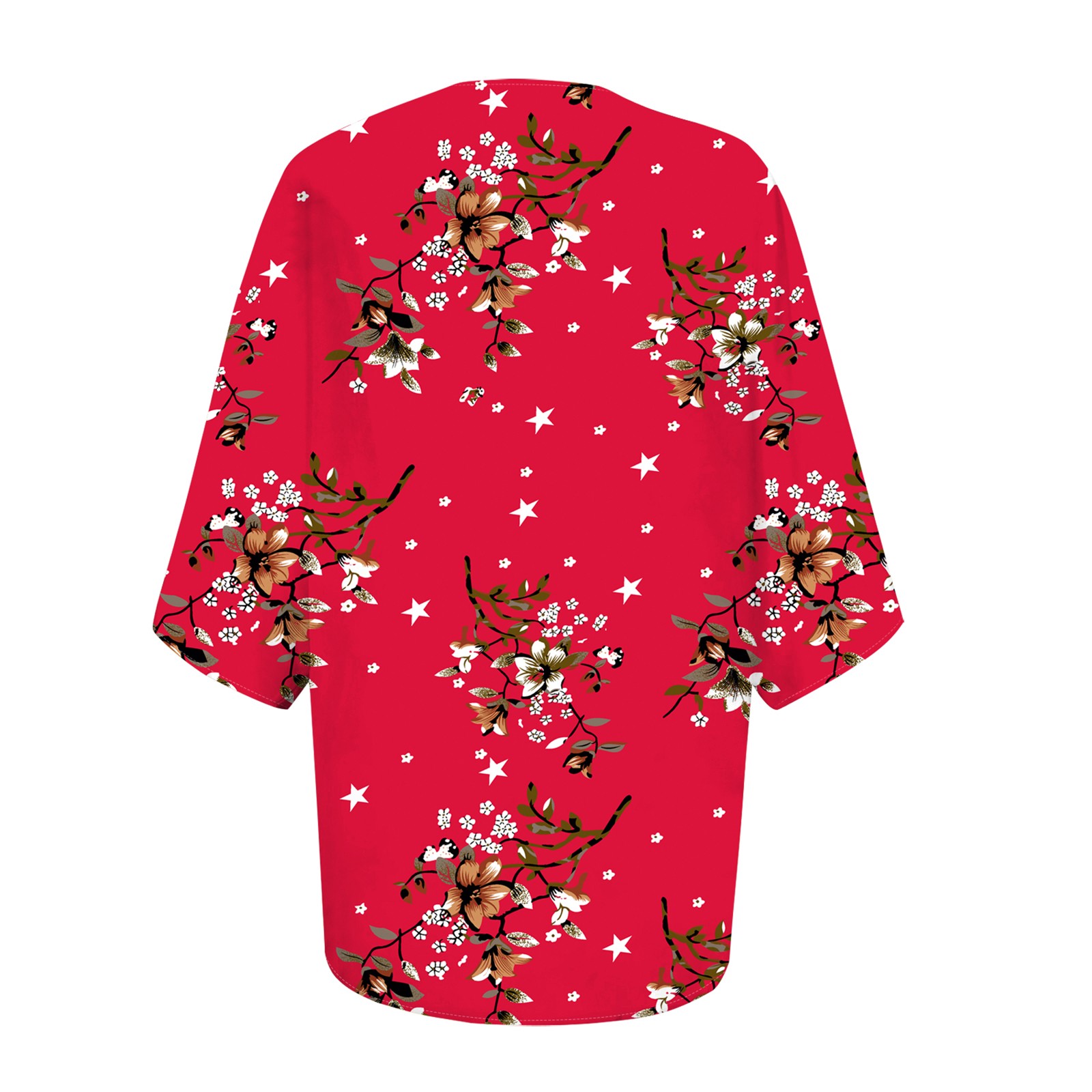 2.Floral Cardigan,Casual summer plus size tops,Kimono beach cover ups,Chiffon shirts,Open Front,Loose Puff Sleeve