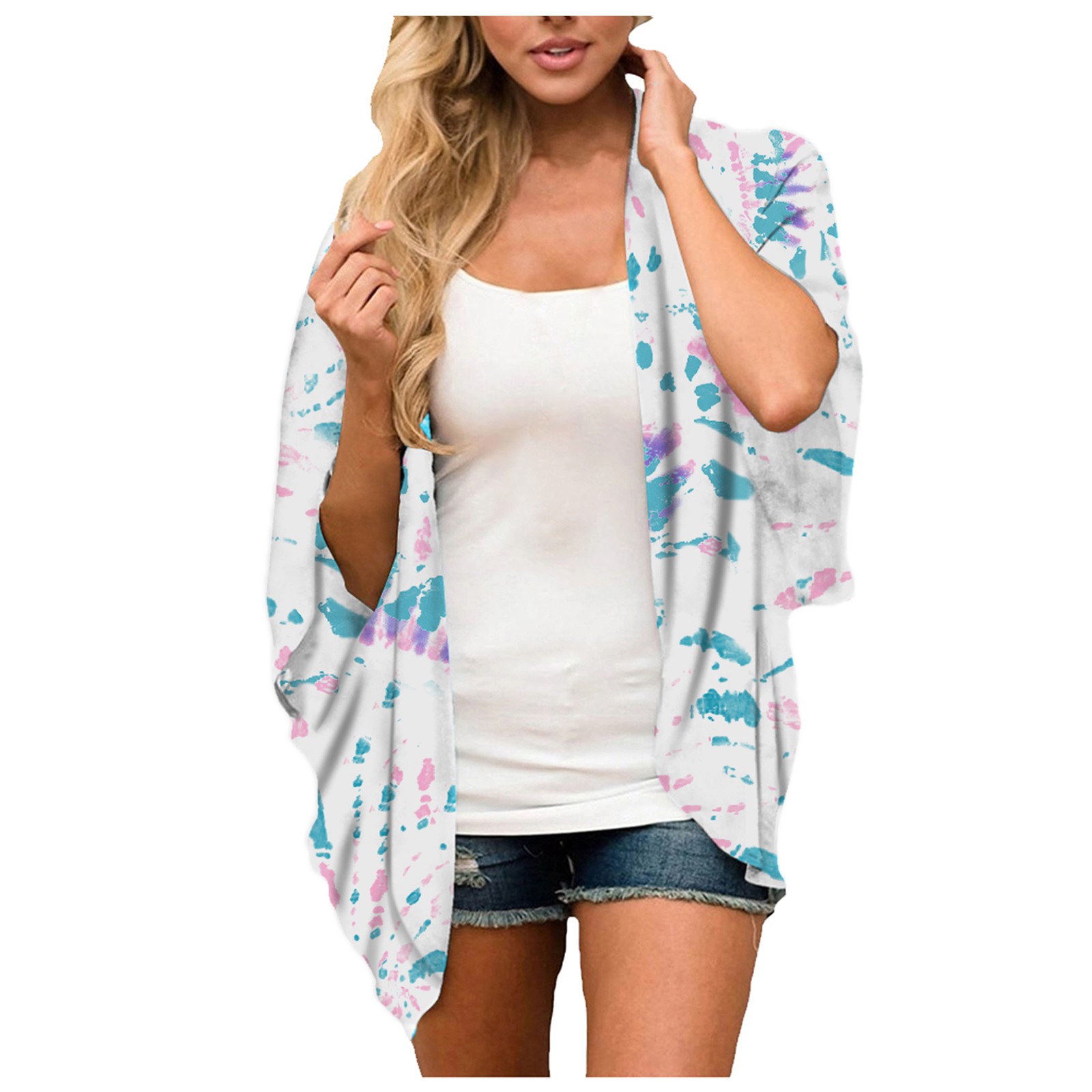 Для женщин с буффами на рукавах с кардиган свободные Cover Up кимоно пляжные блузки, топы; Пальто