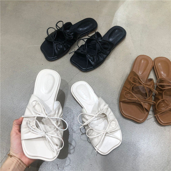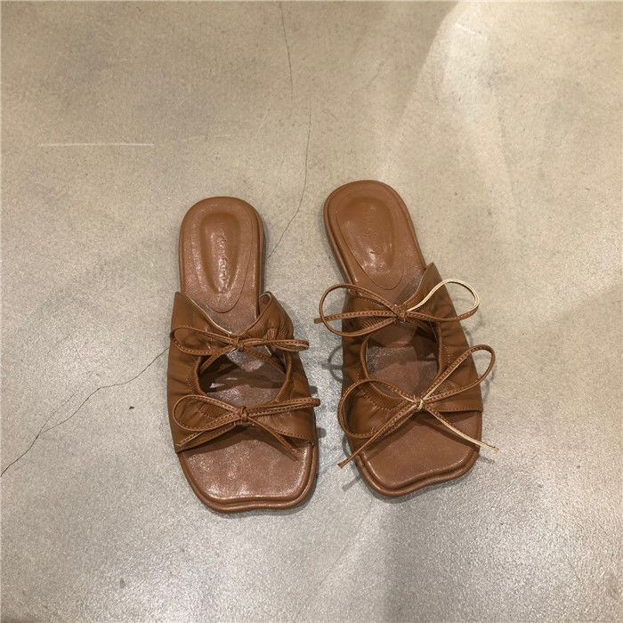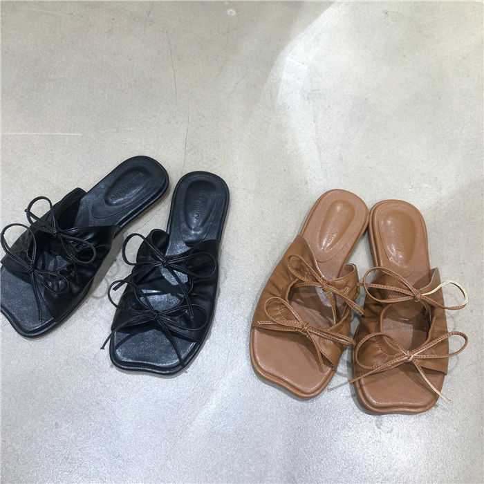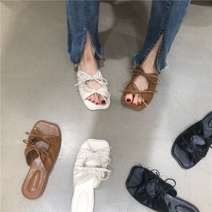 Сандалии женские холщовые дышащие шлепанцы на шнуровке с открытым носком из
