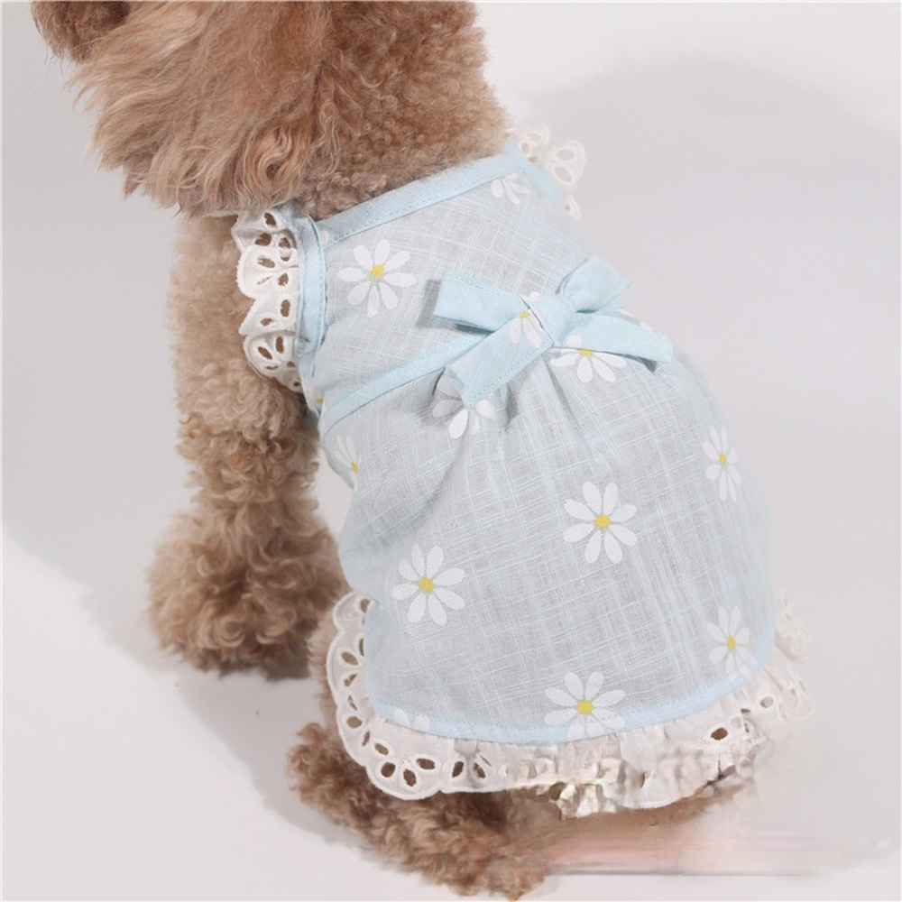 Одежда для собак одежда маленьких Цветочный принт розовый синий юбка без рукавов