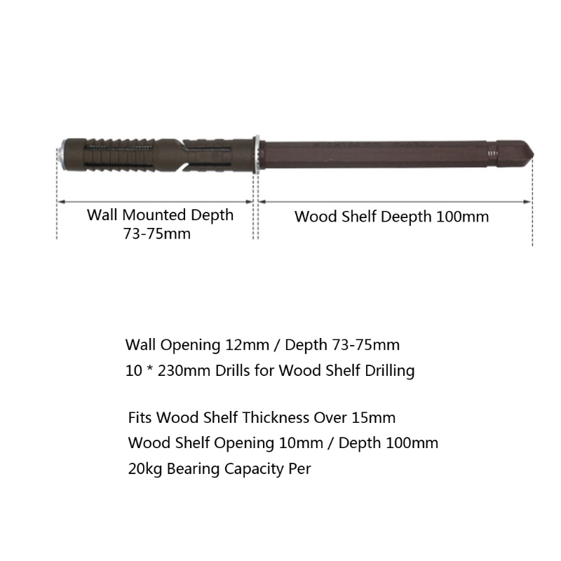 1. Дырокол на стене. Диаметр отверстия: 12 мм; Глубина отверстия: 73 мм-75 мм;