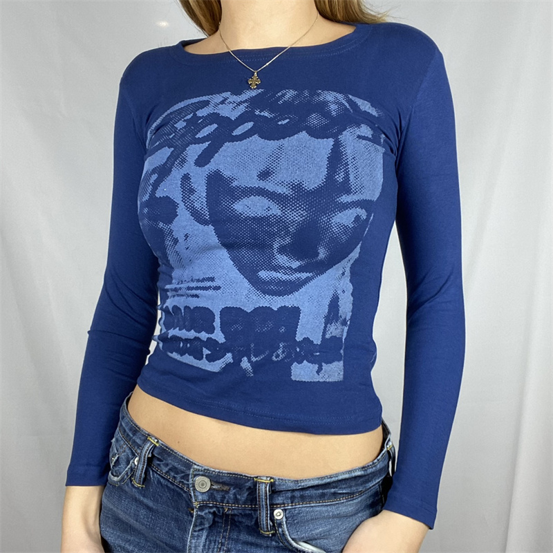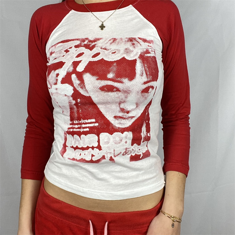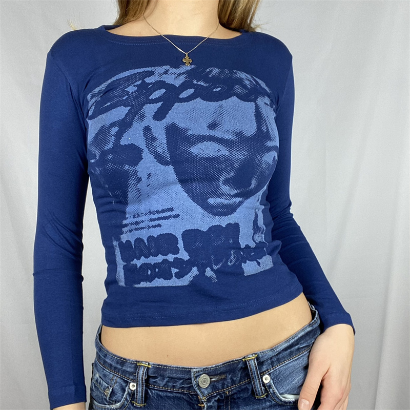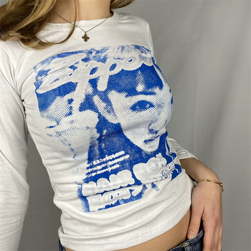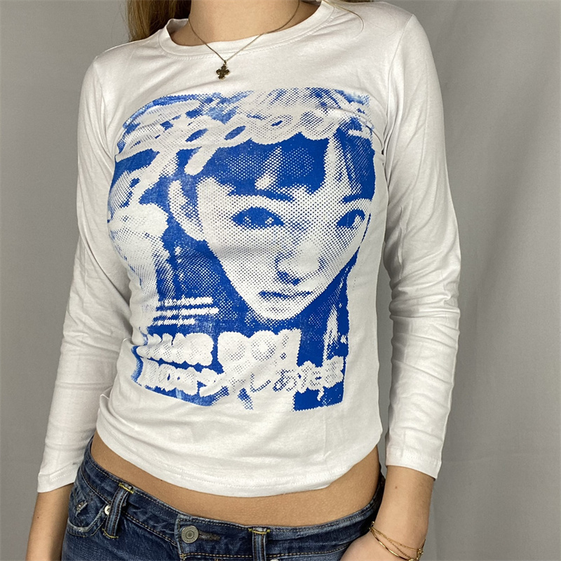 Футболка с длинным рукавом и рисунком лица 90s, облегающая футболка Y2K, топ 2021, Женская Футболка Harajuku с графическим принтом, туники, уличная футболка