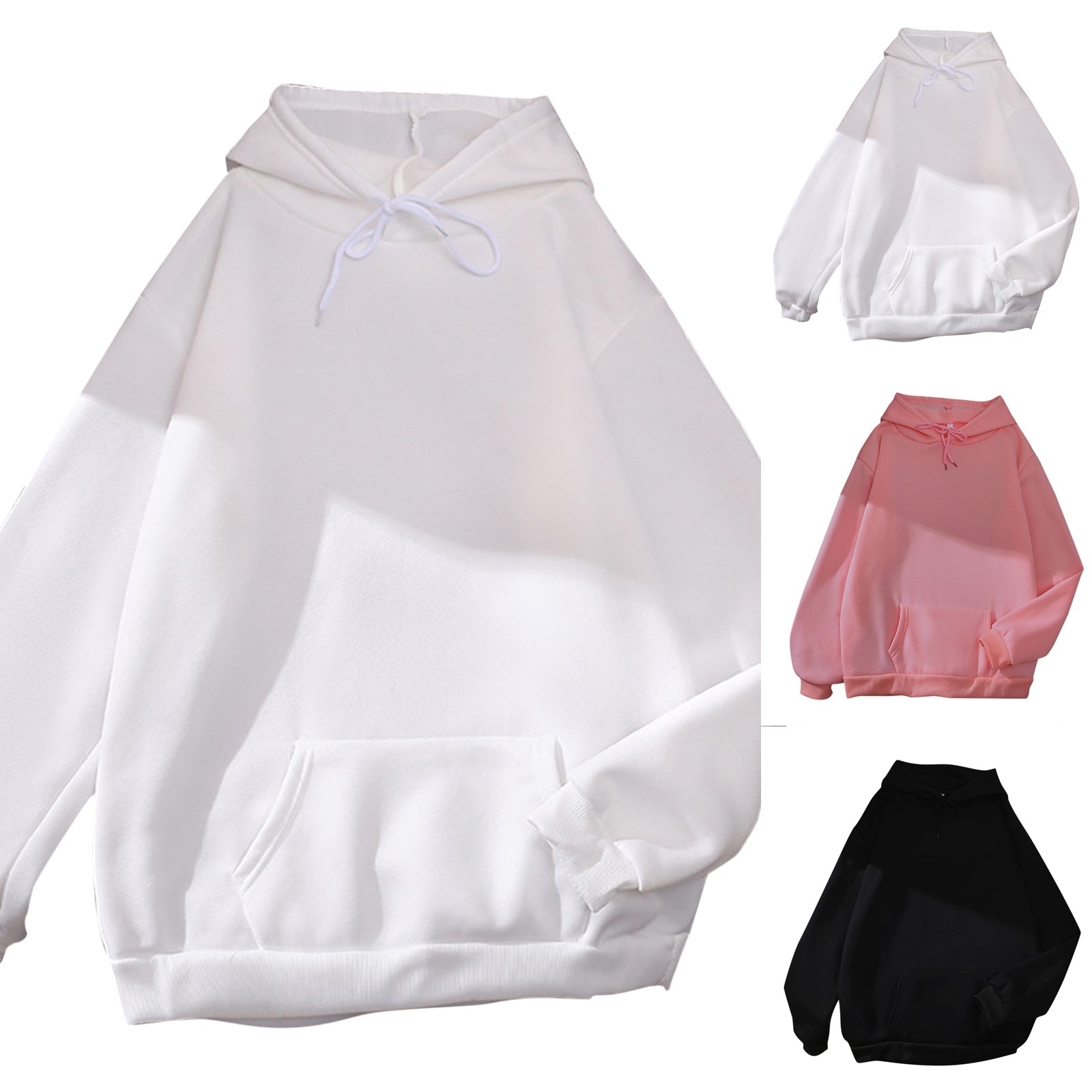 Женский Повседневный однотонный топ с длинным рукавом, свободный свитер с капюшоном, топ с карманом