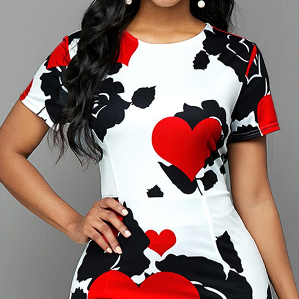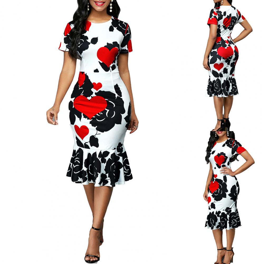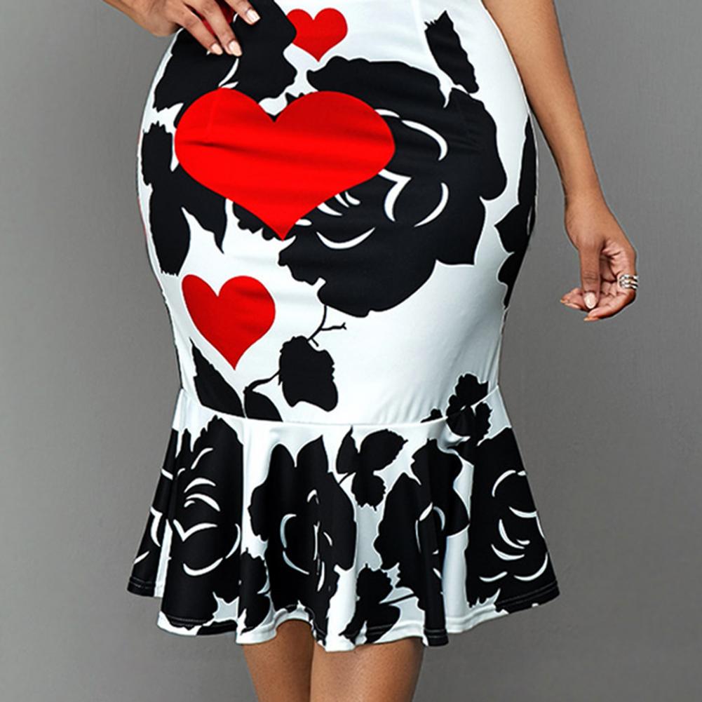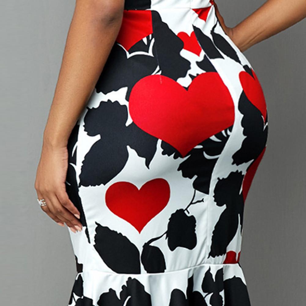 Красное сердце и черный цветочный принт делают это торжественное платье очень уникальным и модным. И дизайн с оборками делает вас более элегантным и темпераментным.