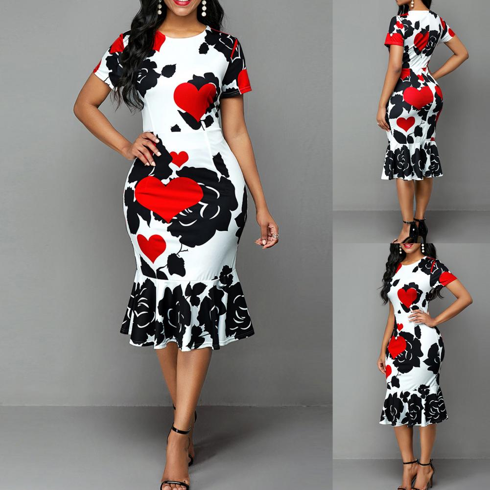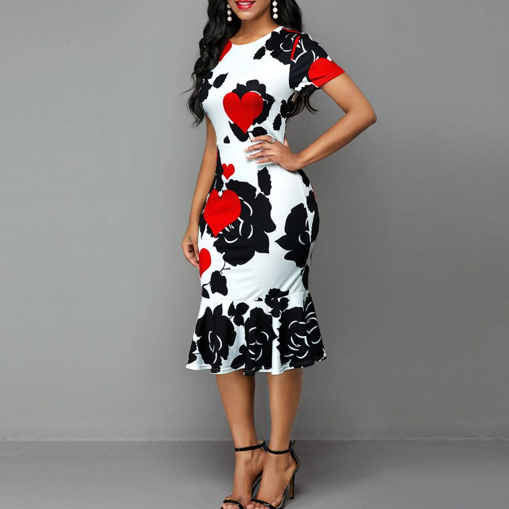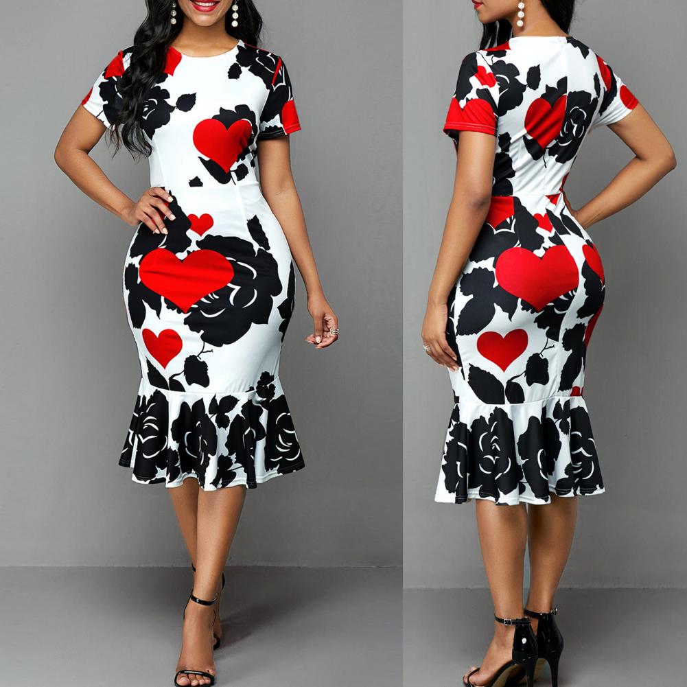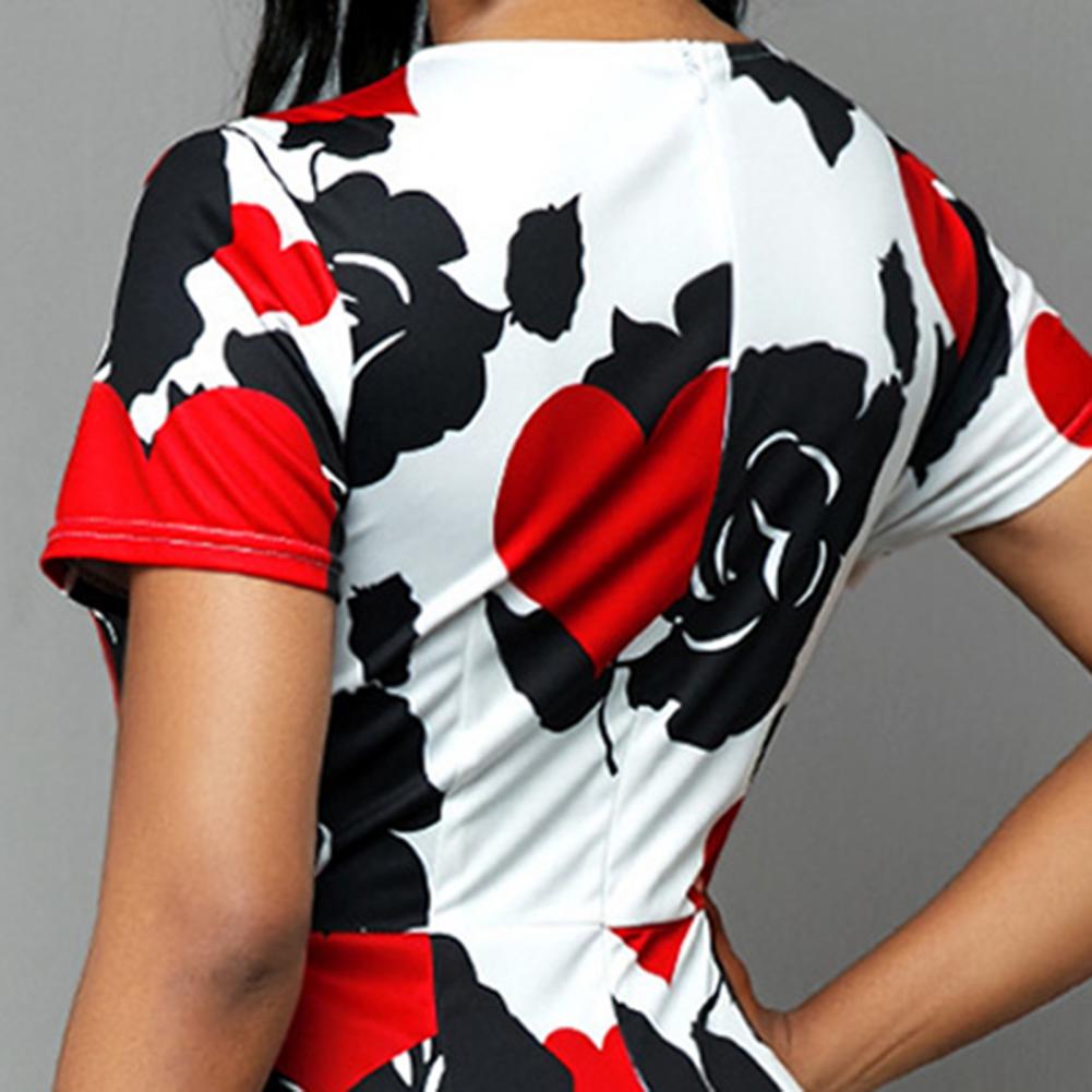 Красное сердце и черный цветочный принт делают это торжественное платье очень уникальным и модным. И дизайн с оборками делает вас более элегантным и темпераментным.