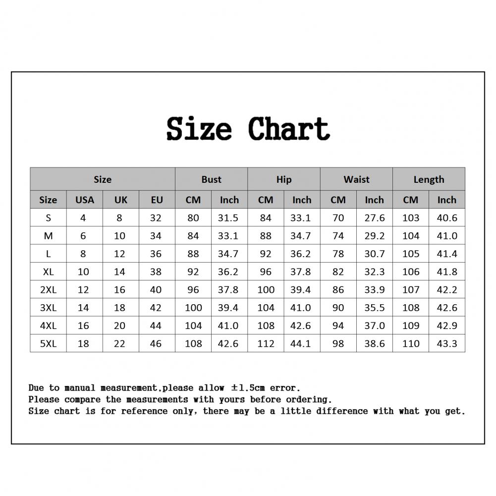 [Наш Размер 3XL] Обхват груди: 100 см/39,4 дюйма, обхват бедер: 104 см/40,9 дюйма, обхват талии: 90 см/35,4 дюйма, длина: 108 см/42,5 дюйма (прибл.)