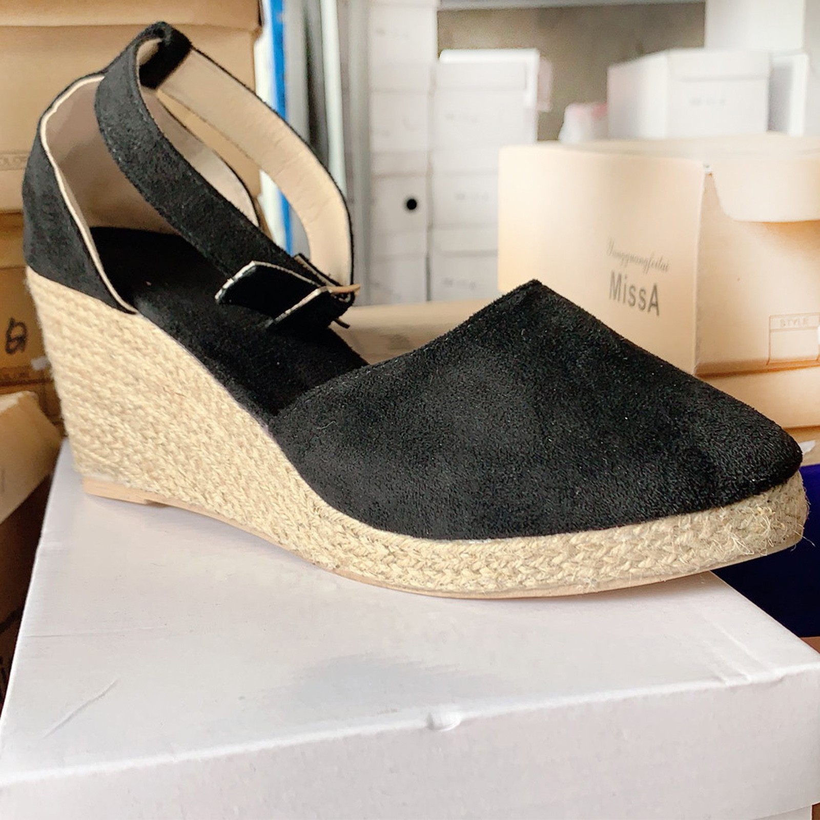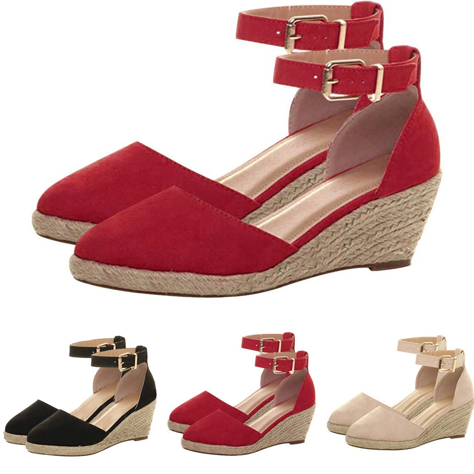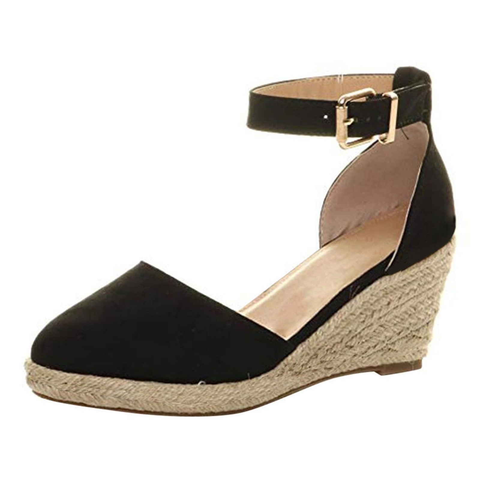 Женские сандалии с ремешком на щиколотке и пряжкой; Клинообразные летние сандалии; Тканевая дышащая обувь