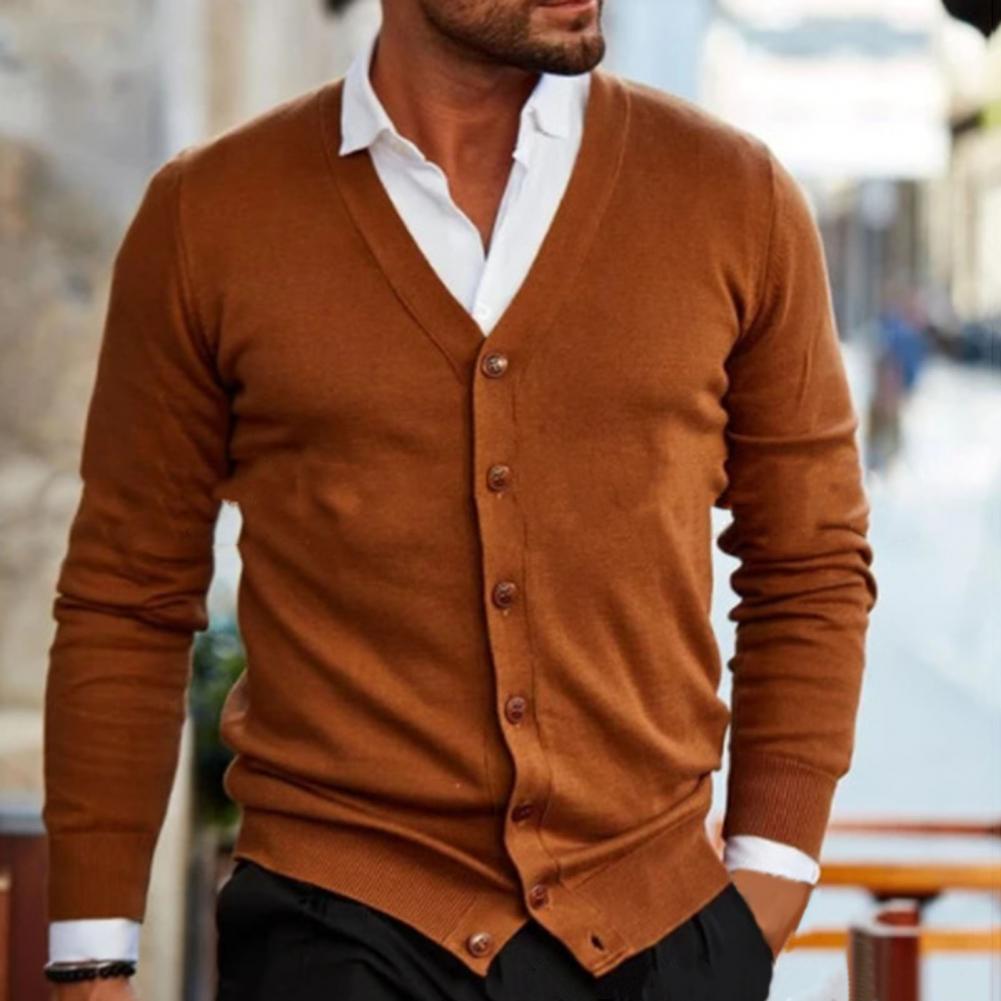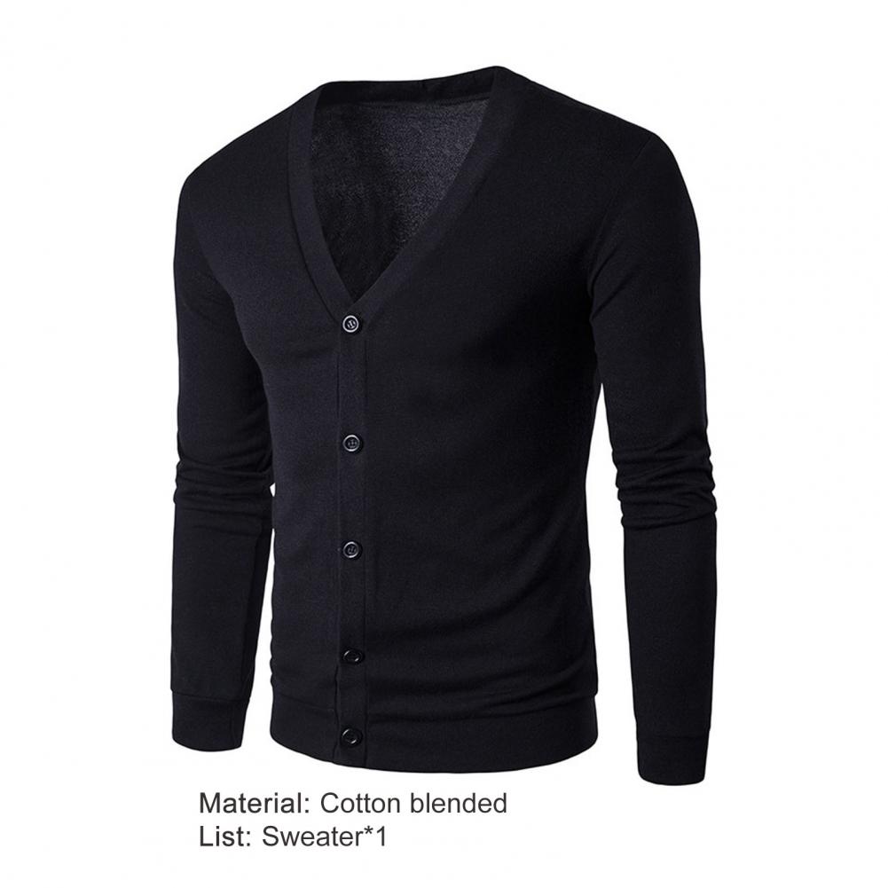 Мужской кардиган имеет однотонный дизайн с v-образным вырезом, который является модным и шикарным. Если вы носите этот однобортный мужской свитер-кардиган, вы легко Носите и снимаете.