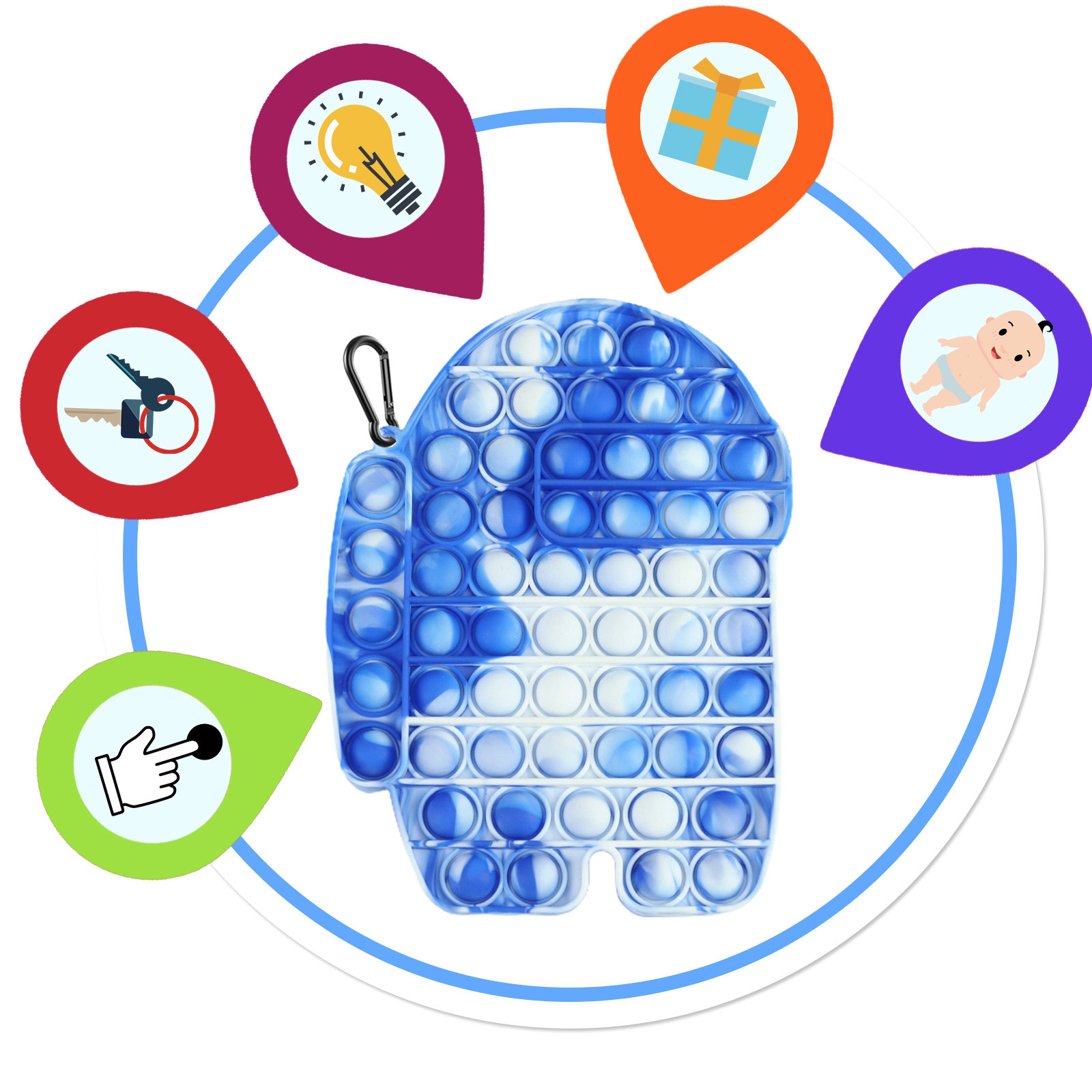 Усть Нажмите на пузырьки мыши вниз, и они делают легкий звук; Затем Переверните его и начните снова! Бесконечно многоразовые и моющиеся.