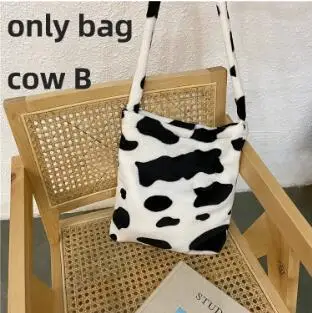 韩国INS原宿奶牛斜挎包女 秋冬日系毛绒绒chic百搭可爱学生小包包