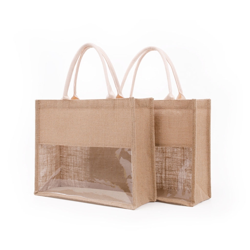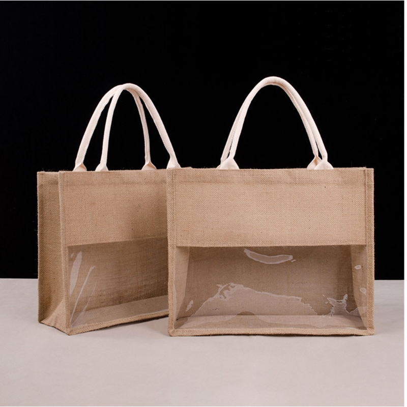 Джутовая сумка-тоут изготовлена из джутового льна, пленочный материал из ПВХ, экологически чистый и прочный, хорошая воздухопроницаемость.