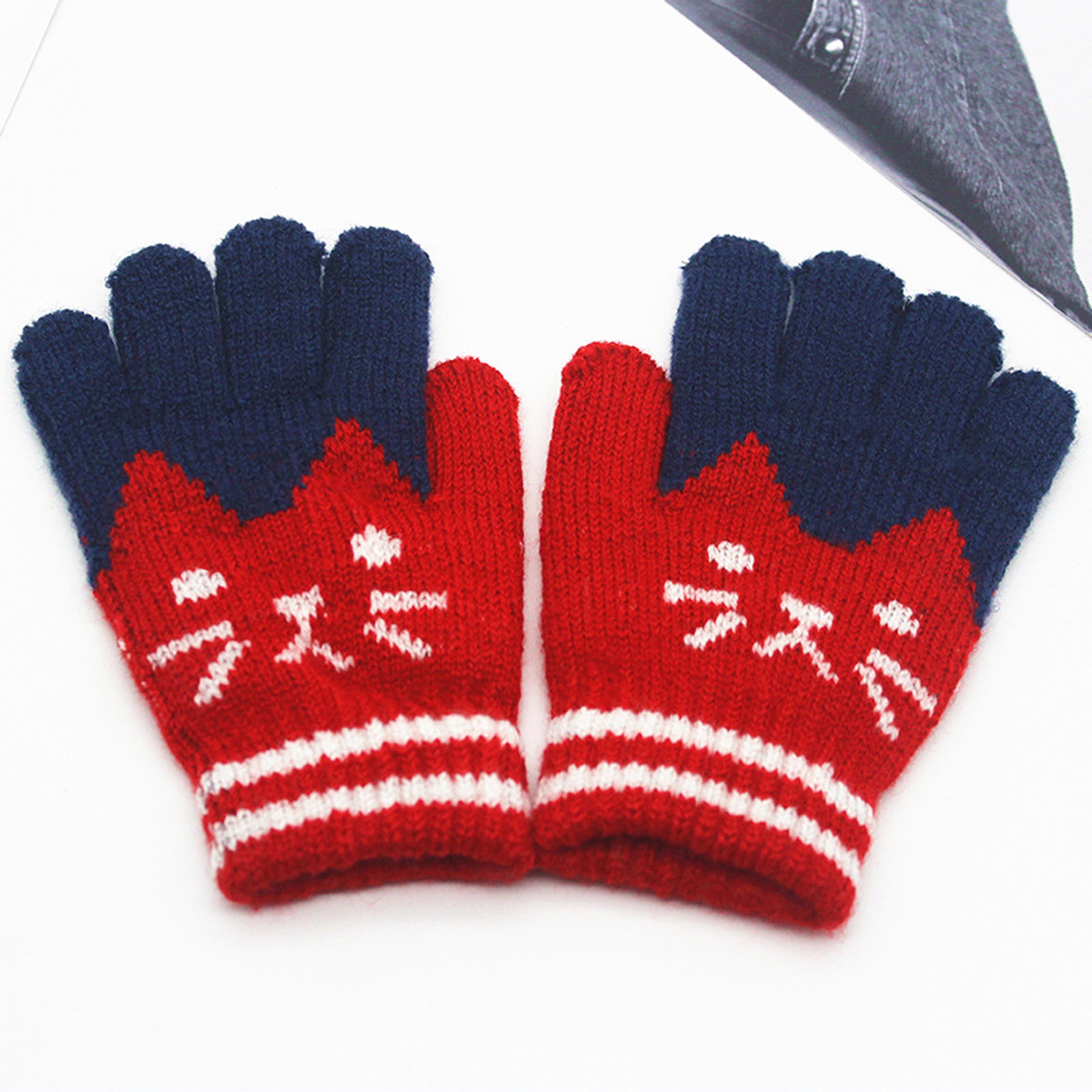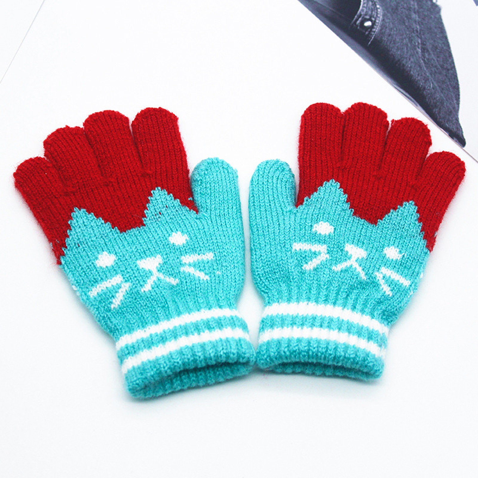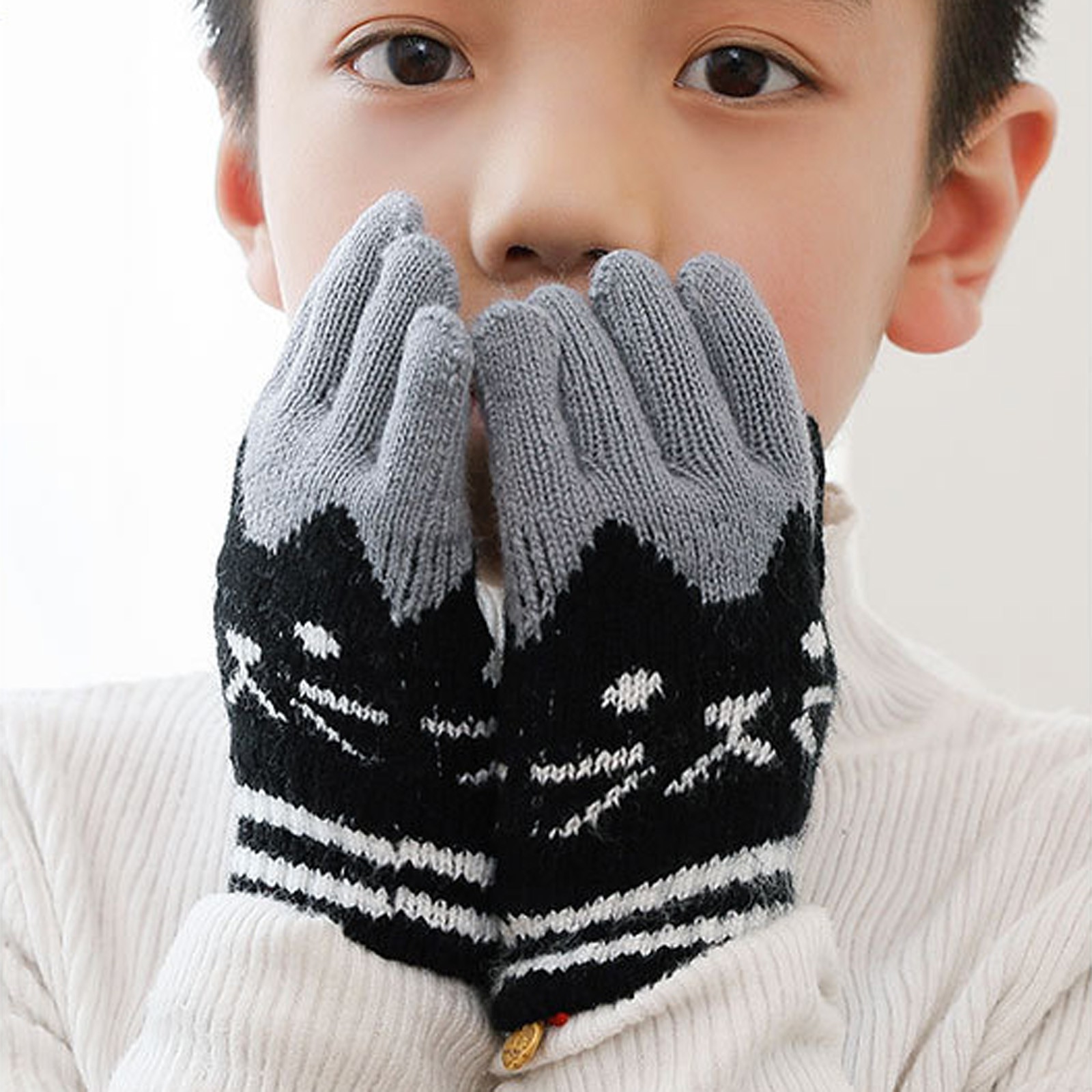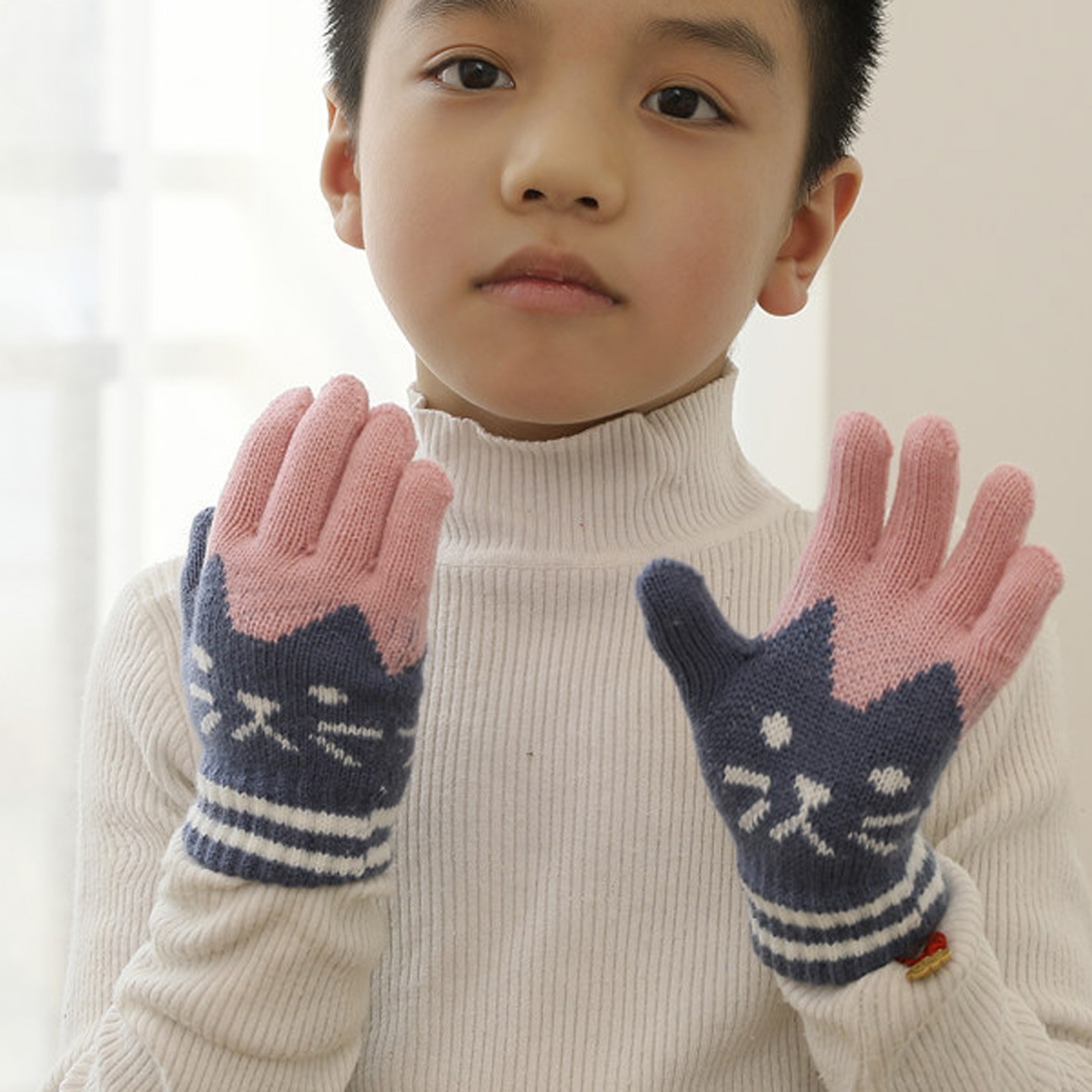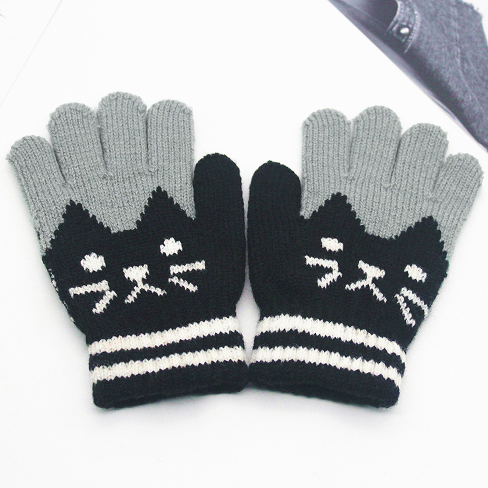 Зимние Детские Бархатные Утепленные перчатки с милым рисунком кота